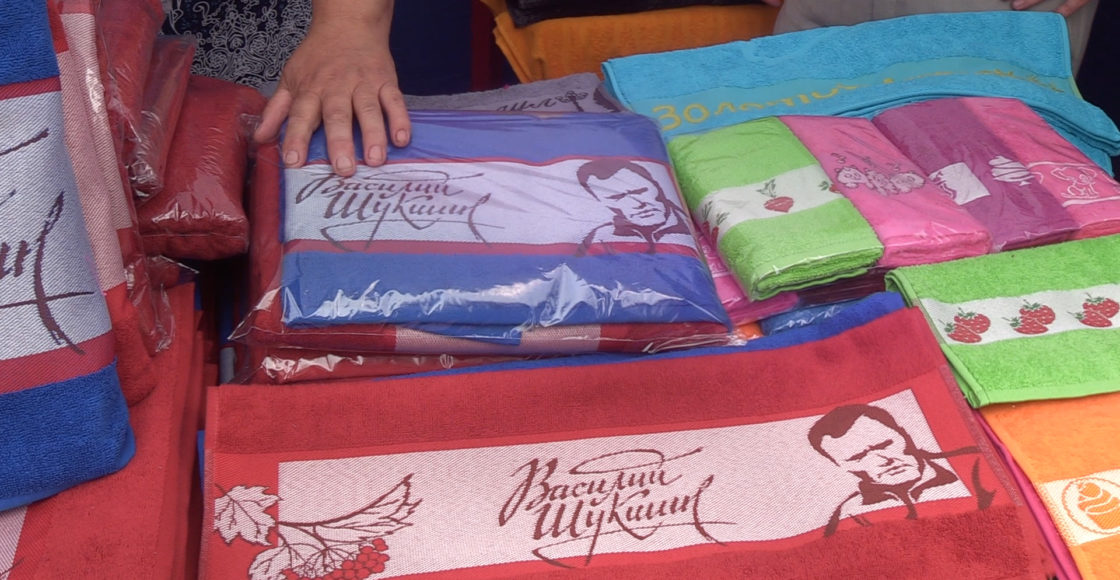— эксплуатацию слогана «Калина красная»: название шоколада, поезд повышенной комфортности, спектакль «по мотивам», где Андрей Мерзликин изображает Шукшина, Мария Шукшина — свою мать, Л. Федосееву-Шукшину, а Надежда Бабкина — просто поёт…;