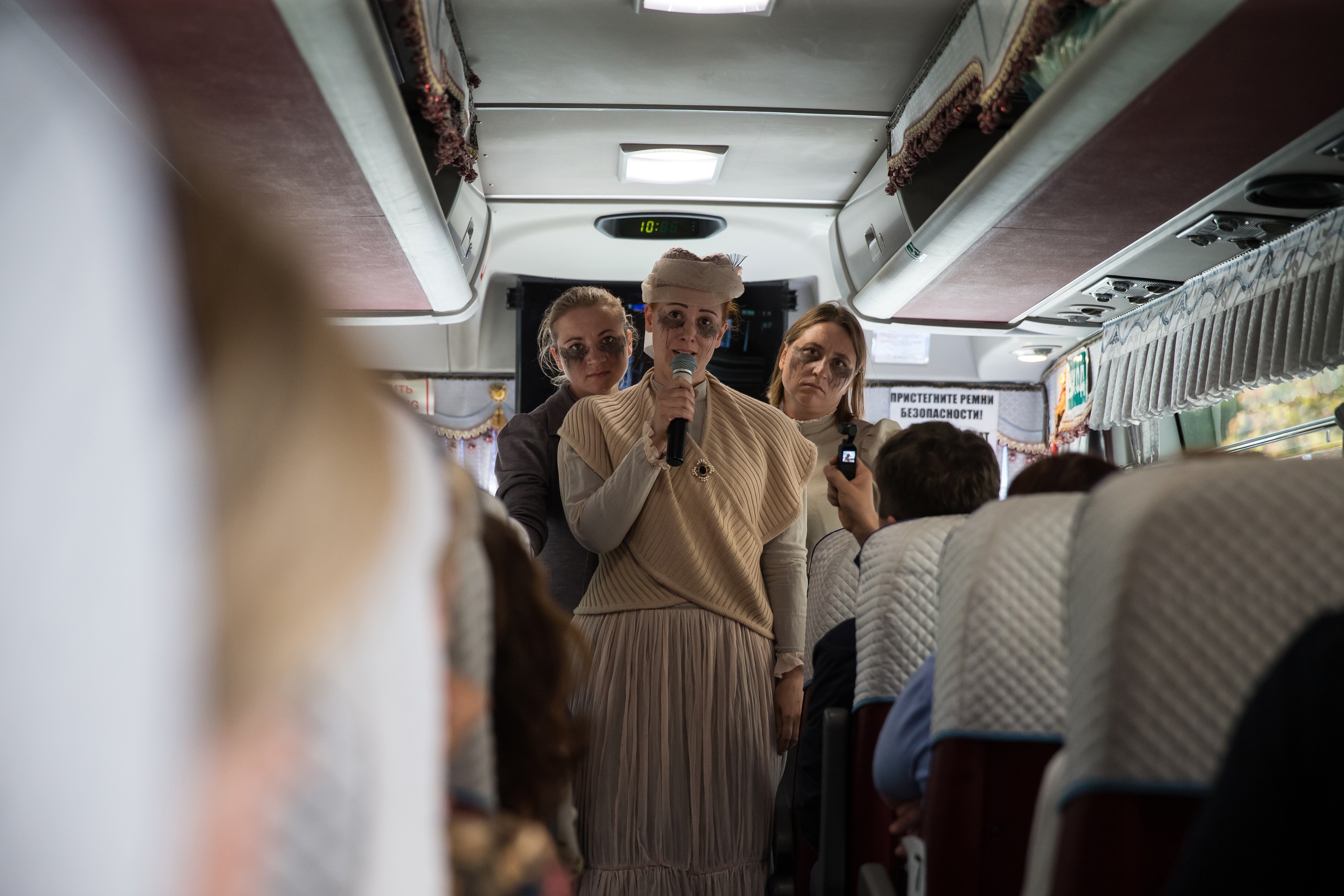 Спектакль появился на свет на режиссерской лаборатории фестиваля «Сахалинская Рампа 2019». Создателем автобусного приключения стал Александр Созонов. Александр — выпускник курса Серебренникова, работал в разных городах России и за ее пределами. Цель Созонова — сделать зрителя соучастником: предоставить ему возможность самостоятельно собирать пазлы спектакля из предложенных игровых и психологических кусочков. Александру интересен иммерсивный театр и использование мультимедийных средств при создании спектаклей.