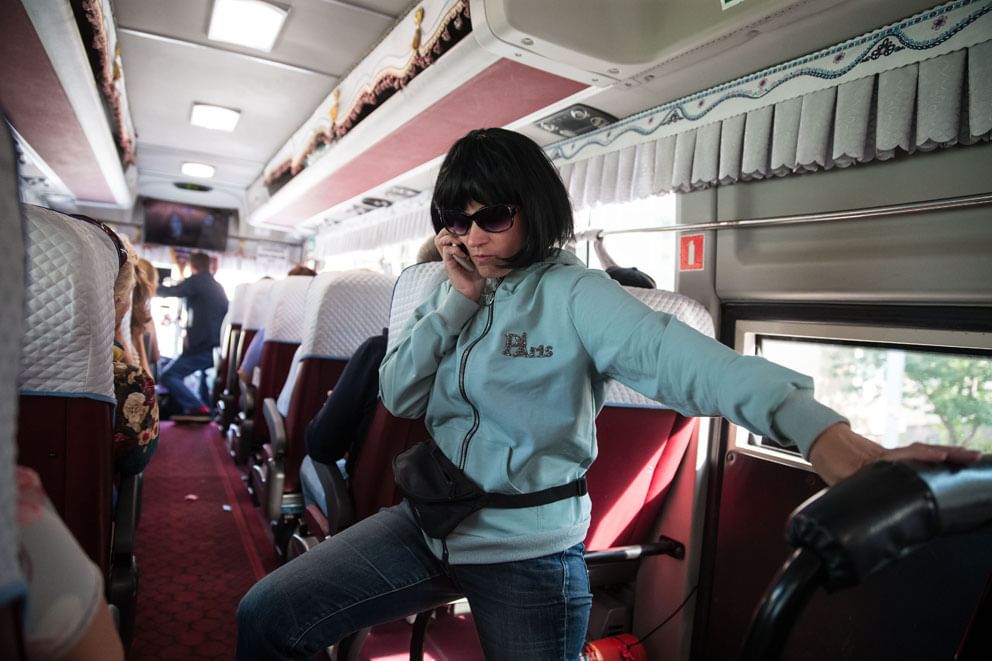 Спектакль играют за пределами театра: вместо кресел партера — сидения междугороднего автобуса. Часть его проходит в движущемся автобусе, причём маршрут в каждом городе свой. В Петербурге — из внутреннего двора театра мы ехали до Петропавловской крепости и обратно. Артисты используют пространство внутри автобуса, а так же работают и вне его, а зрители, находясь в непосредственной близости от актёров, становятся соучастниками. Действие пьесы происходит в российском Благовещенске и китайском Хэйхэ. Видеоролики с «китайскими» эпизодами показывают на мониторах автобуса.