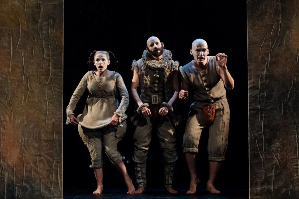 Режиссер Денис Бокурадзе поставил необычайно динамичный спектакль в стиле популярного театрального жанра средневековой Европы – маски-фарс. В исполнении Арсения Плаксина (шут) звучала «Баллада примет» и другие стихотворения французского поэта Франсуа Вийона: