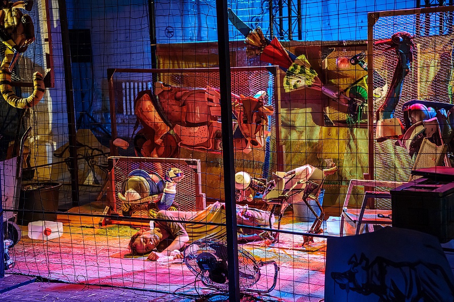 В целом, «израильский» кусок спектакля больше похож на водевиль или комедию положений – истеричка жена, глупый начальник, которые вещает что-то невразумительное с небес, требующие внимания животные, жара и все это одновременно, а «у меня видишь? У меня всего две руки!». Понятно, что соединить «Газа» с «Донецком» пришлось из-за невозможности сейчас играть «Донецк» отдельно, но такое объединение не пошло «Газа» на пользу. Похожее ощущение возникает, когда, перестав читать новости, открываешь фейсбук, а там кто-то выкладывает удачный поход к маникюрщице и новые «ноготочки». Безусловно, и то, и другое имеет право на существование. Но контраст получается не в пользу «ноготочков».