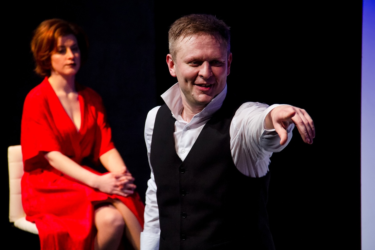 В какой-то момент Чайка с Селезнем, а с ними и весь зрительный зал оказываются на типичном ток-шоу средней руки с ведущим, который не в состоянии произнести реплику с первого раза и просящего ещё дубль, и где публике на экране высвечиваются подсказки, что им следует делать — «аплодисменты», «недовольный гул». «Четвёртая стена» исчезает, чтобы и зрители поучаствовали в этом перманентном судорожном конфликте. Камера, мотор, записываем.