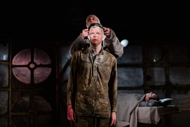 В спектакле семь персонажей, и первый из них — Трус, вот так запросто, без имени, спокойный интеллигентный молодой человек мирной профессии. Он ждёт, что со дня на день отправят на войну и убьют, и не понимает почему. Его играет очень красивый Илья Рудаков, с которым я познакомилась в воскресенье на «Днях Савелия». А вот Никиту Сухарева, штатного актёра МДТ, я раньше нигде не видела, а жаль — он очень искренний, глубокий и трогательный. Его герой, пациент психиатрической больницы, уверен, что можно уничтожить войну, сорвав красный цветок, впитавший всё зло земное. Если бы это было так просто! Солдат (Владимир Лесных) тяжело ранен в бою и ждёт чуда, которое его спасёт. А кто бы спас человечество от самого себя? Андрей Нечаев играет молодого врача, которого вскоре отправят на фронт, ампутировать конечности и облегчать страдания. Он не уверен, выдержит ли каждый день смотреть на мучения. Анна Христич в этом спектакле — отважная и сильная медсестра Мария, которая рвётся на войну, чтобы хоть кому-то помочь, спасти от боли. Артём Пономаренко сыграл роль Кузьмы — больного, нуждающегося в заботе и любви, как и все мы. Мы наблюдали уникальный случай — режиссёр спектакля Антон Корнилов в первый и последний раз сыграл Доктора, внимательного и сочувствующего чужим страданиям.