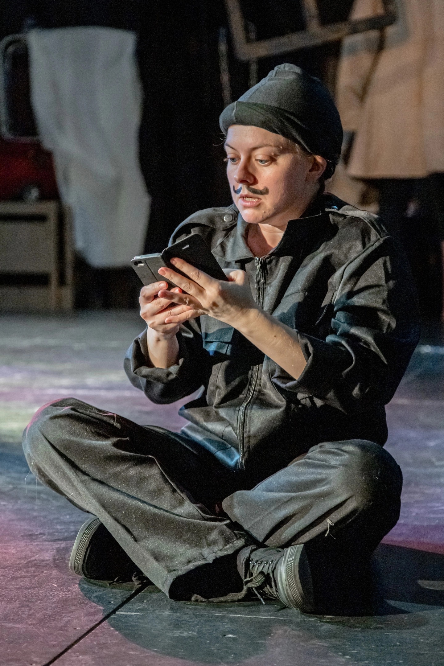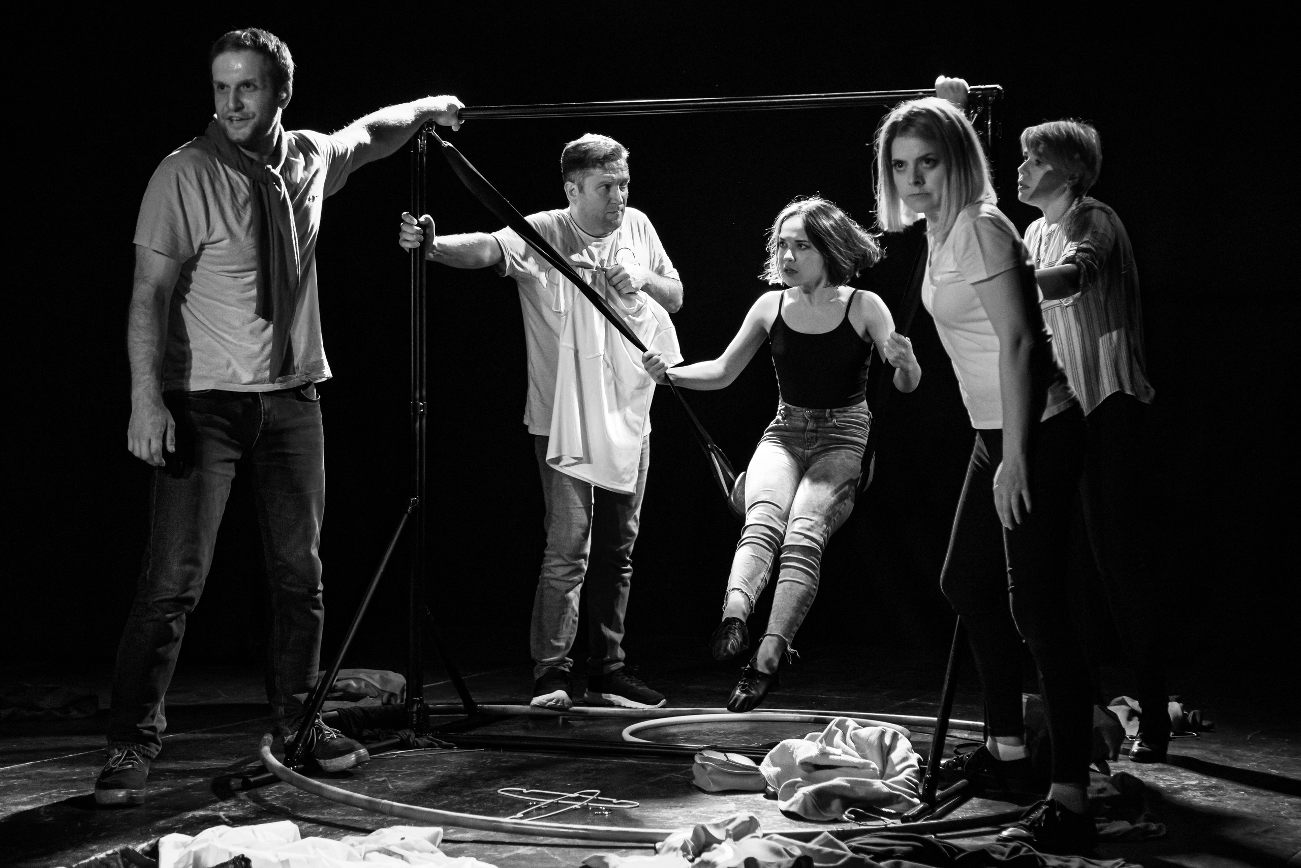 Также над спектаклем было весьма интересно работать: к нам приходили актёры из «Лицедеев» и театра “Комик-Трест” — Анвар Либабов, Павел Мансуров, Наталия Фиссон — и занимались с нами, подсказывали по пластике, клоунаде. Нам ведь этот жанр изначально был не очень понятен… В итоге получилось соединить драматический спектакль и клоунаду, причём реализовать это с моментальными перевоплощениями.