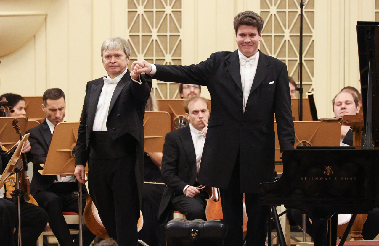 А исполнение вместе с оркестром Денисом Мацуевым таких шедевров как Рапсодия на тему Паганини Рахманинова в первом отделении и Концерта №1 для фортепиано с оркестром Шостаковича во втором имело оглушительный успех. Слушатели, как всегда, получили истинное удовольствие от игры Мацуева. Блистательный пианист продемонстрировал все свое мастерство и вызвал еще больший восторг у слушателей, сыграв дважды на бис. После исполнения на бис музыки Грига, произошел забавный случай: возможно, зрители вошли в ритм шествию гномов и после того, как Мацуев покинул сцену, устроили шествие на выход. Администрации пришлось сделать объявление о том, что концерт еще не завершен и впереди будет исполнение сюиты из музыки балета «Болт» Шостаковича. Слушатели вернулись на свои места и концерт был продолжен.