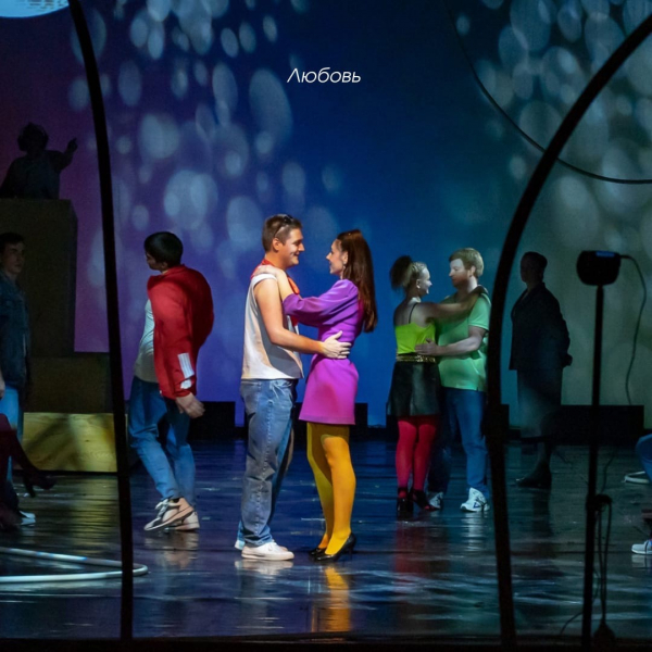 Присутствуют и разные предметы “модных 90-х”: красные пиджаки, спирт «Рояль», школьные дискотеки и подарки от иностранцев. Это так называемые символы эпохи, но они кажутся надуманными, не несут в себе ничего. Цветы на линейке, пионерское знамя и галстуки вовсе серого цвета, как будто сошли с экранов черно-белого телевизора. Финал спектакля происходит в наши дни, герой остается наедине с собой. Будущее, о котором он так часто думал в детстве и спрашивал бабушку, стало прошлым. И тут все более четко проступает замысел спектакля и аллюзии к нашей истории. Вопросы автора пьесы и режиссера к нам прорываются иногда сквозь сказочное повествование. Денис Юрьевич, будучи нетрезвым, сидит на краю сцены и обращается прямо в зал, к зрителям: где ваша свобода, что вы сделали с нею? Или вдруг включают «Лебединое озеро». Краткий курс новейшей истории заканчивается неутешительно. Нам же остается только рефлексия.
