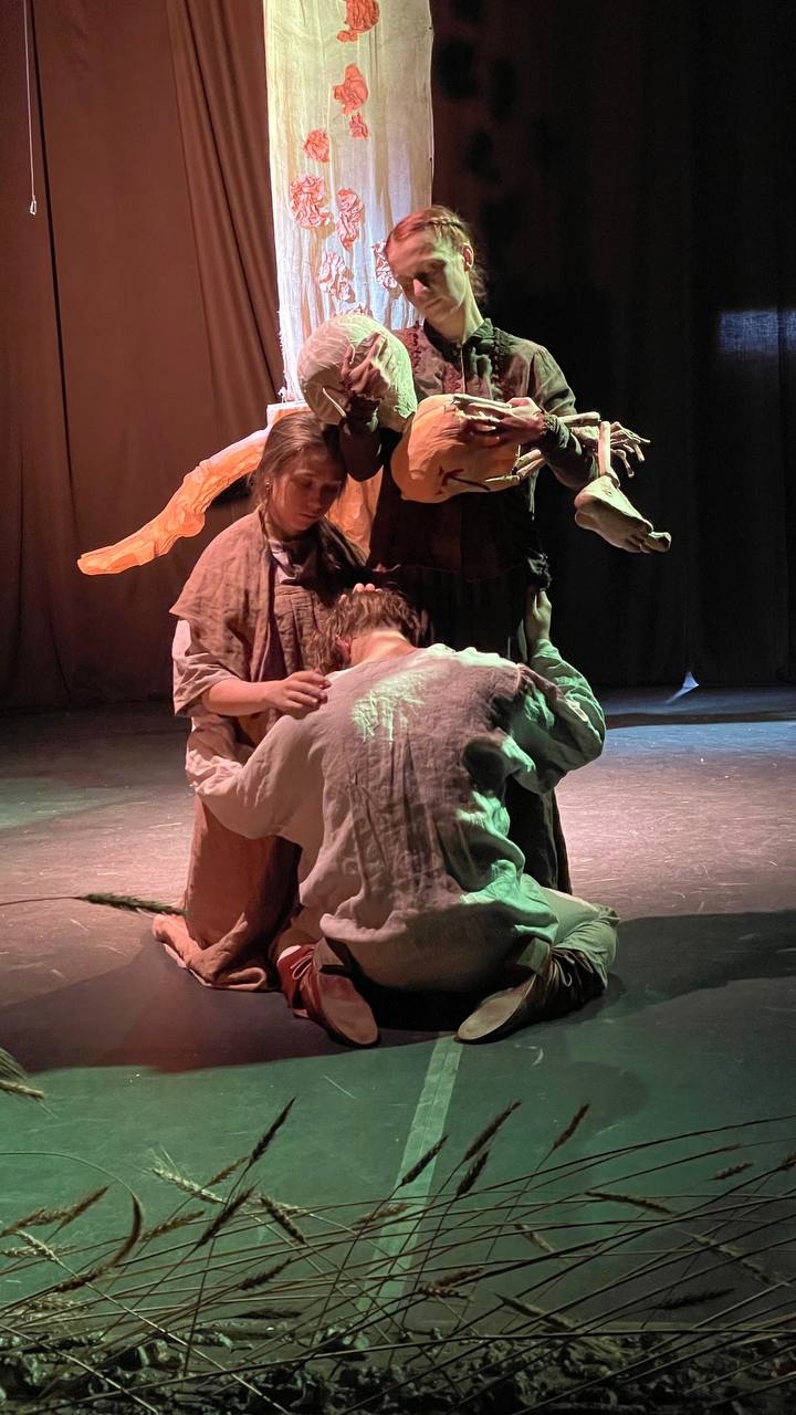Премьера «Жизнь Василия Фивейского» в Малом театре кукол вышла очень вовремя, в двадцатых числах февраля, когда многие люди в России переживают депрессивный тоскливый период. Катерина Романова взяла не самый известный текст Леонида Андреева и поставила мрачный и тяжёлый в своей безнадёжности спектакль о смерти и переживании горя. На сцене колосится пшеница, а хор поёт и рассказывает нам историю. Как говорила Вера Каратаева, актёры занимались вокалом для премьерного спектакля многие месяцы. Главный герой постановки — священник, который забыл, что Бог — это любовь. Василий (Игорь Баянов) выбрал путь неистовой веры, а она никого ещё не сделала счастливым.