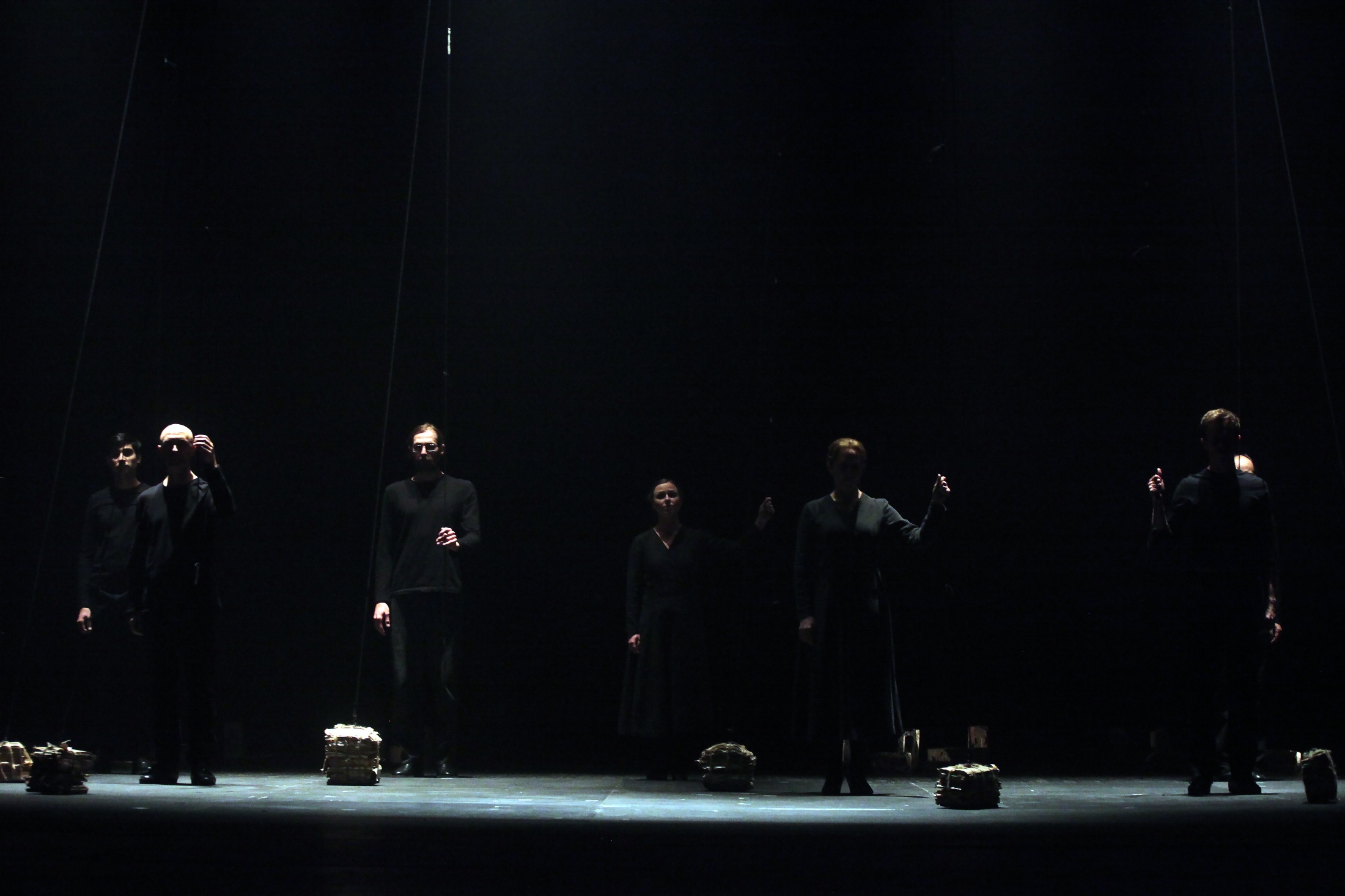 Актерам отдана роль внутренней жизни людей. Лица людей, которые жили в блокаду, проступают сквозь слова, написанные ими. Они пишут о том, что им хочется думать о музыке и читать стихи. Они корят себя за постоянные мысли о голоде и тайком съеденную конфету. Им страшно упасть, заблудиться в темноте, нащупать неизвестный предмет на пути. Кто-то скрупулезно ведет записи о том, как изменяется размер пайка, ужасается небывалым суровым тридцатиградусным морозам. А сквозь их руки просыпается мука, и, как снег, падает на землю. И тут же голос рассказывает о чувстве свободы, которое возникает на Дворцовой площади. Дети мужественно и по-взрослому описывают медленную смерть родителей, пугает осознание того, что все всё понимают.