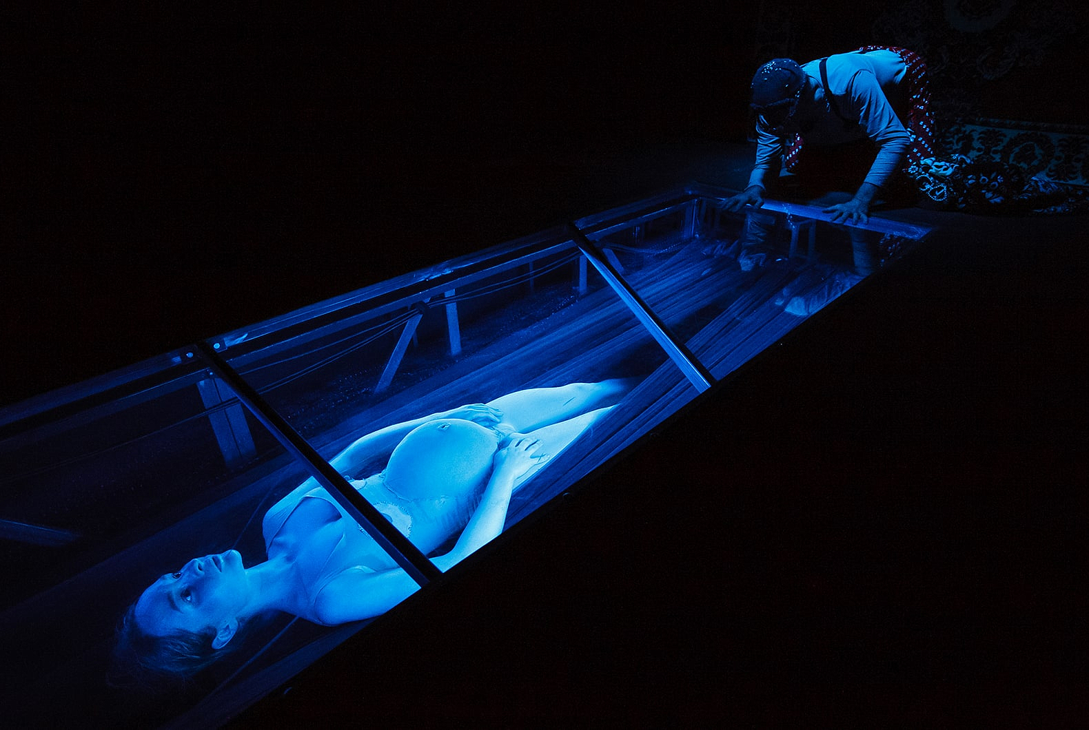 Сразу из фойе зрители попадают за длинный, как принято в деревнях, свадебный стол, куда по-гамлетовски «пойдёт пирог поминный». Но, прежде чем торжество, ради которого мы все здесь собрались, начнется, нам покажут маленькую и хрупкую дочь мельника (Софья Журавлева), поверившую на свою погибель сладким словам возлюбленного Князя (Александр Дулесов). Она даже надела свадебное платье, чтобы прожить с избранником всю жизнь, пройдя рука об руку через все горести и печали. Но свадебное платье предназначено другой, новой, смелой и бойкой, игрушке и выход видится только один — смерть, лишь бы не чувствовать больше боли. Ольга Зайцева тоже играет трагического персонажа — вначале девушка счастлива и горда собой: вот какой видный и популярный жених ей достался. Но ореол грандиозности и великолепия быстро спадает, когда Княгиня понимает, что за человек её муж. Таких, как она, у него пол-города, и за крупицами его внимания очередь слишком большая, не достоять.