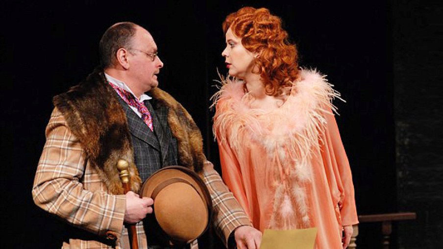 Дополнений к таланту автора пьесы минимум, но все удачные. Сцена в театре маленькая, поэтому используется крутящийся круг. Это позволяет актерам картинно ходить из комнаты в комнату, драматично догонять и уходить прочь. Стена из черного кирпича за сценой эффектно разваливается, когда нужно удивить зрителя появлением внезапного мужа или поклонника на роллс-ройсе. Мой любимый момент в спектакле — часть третьего действия, когда адвокат Рэм (Александр Васильев) и его помощница по деликатным вопросам Мисс Монморенси (Заслуженный артист России Анатолий Горин) представляют семье план, как обойти британские законы и получить развод. Здесь я смеялась больше всего с ощущением, что я сорвала британскую акцизную марку с бутылки дорогого игристого, и это тот самый оригинальный Сомерсет Моэм. То же самое сделают в финале и оба бывших мужа, откроют бутылку шампанского и выпьют за свободу и третьего мужа Виктории: “да поможет ему Бог”.