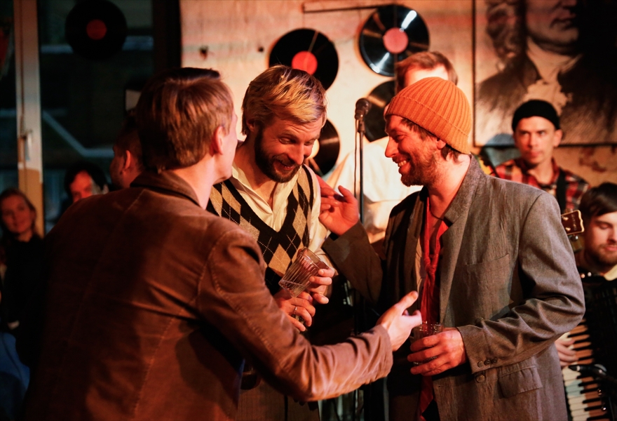 В спектакле участвуют: Семён Серзин, Евгений Серзин, Арсений Семёнов, Михаил Касапов, Коля Куглянт, Владимир Карпов, Юлия Башорина, Марина Даминева и Павел Чернейкин. Они поют, танцуют и пьют, призывают петь, танцевать и пить зрителей, образуют пары, создают атмосферу летних дискотек в парке. Как сказала моя подруга, «это спектакль про ленинградских алкашей». Дневники и рассказы Александра Володина тщательно проспиртованы, он часто писал их, основательно посидев в пивной, я тихонько говорю: «Я свои тексты тоже так часто пишу». Не ругайте меня за комментарии, ребят, они по делу. «О, самое бессильное и позорное время в жизни моего народа – время от рассвета до открытия магазинов!».