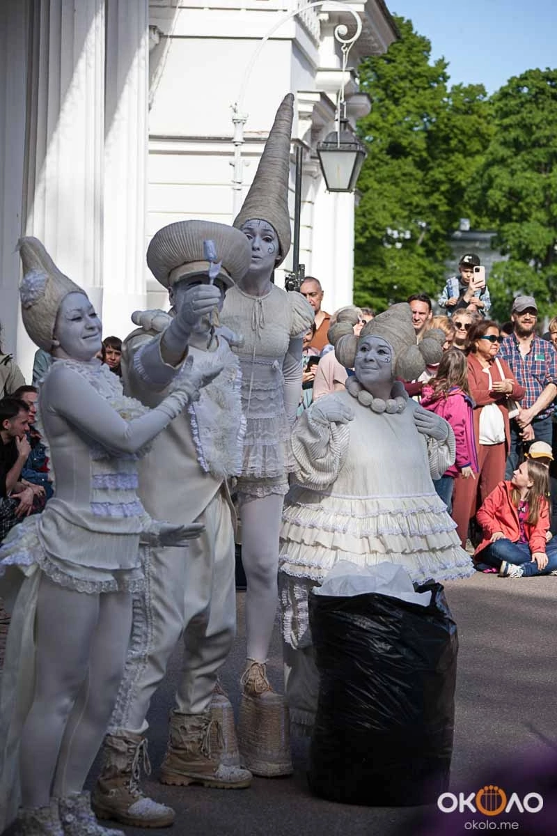 27 и 28 мая сразу две площадки около Елагиноостровского дворца превратились в театральные площади, на которых мифологические персонажи, клоуны, мимы и жонглеры устроили веселый зажигательный праздник-маскарад из буффонады, комедии, розыгрыша и игры. Импровизированные спектакли уличных театров «СоЛу», «Vokrug», «Комик-Трест», «НоС», Упсала-Цирка собрались вместе на Елагином острове в честь тридцатилетнего юбилея Театра «Странствующие куклы господина Пэжо», который также представил на празднике свои спектакли «Месяцы» и «Музеум». На фестиваль приехали и театры из Альметьевска, Кургана и Воронежа, для которых художественный руководитель и режиссер театра Анна Шишкина ставила спектакли.