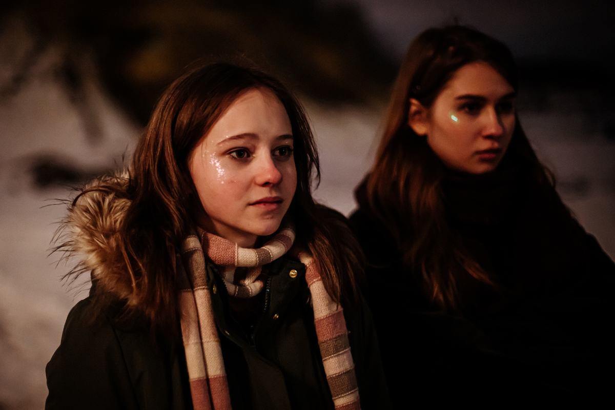 Выход на улицу – это своеобразный путь к свободе. Там девочку ждет праздник, селфи и шампанское с лучшей подругой и первый поцелуй по любви с мальчиком из Риги Даней (Олег Савостюк). Игра в снежки, катание с горки, огненное шоу в компании друзей могут создать у зрителя впечатление, что он смотрит молодежную комедию, вроде «14+» Андрея Зайцева. Особенно в тот момент, когда на экране появляется Ульяна Васькович, сыгравшая в том фильме главную роль. Но это впечатление обманчиво, как и те попытки изобразить счастливую семью, которые предпринимает мама девочки.