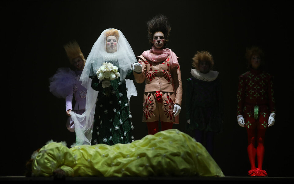 В спектакле есть день и ночь. Днем силы зла особенно активны: тебе пригрозят выйти замуж за нелюбимого, прольётся кровь, возлюбленный вынужден будет бежать, спасаясь. Но ночью всё засыпает, успокаивается. Ночью спят любящие друг друга и влюблённые без взаимности, старики — диктаторы и огромные их войска, спят чудесные придурки, осмеливающиеся бросить им вызов и бороться за свободу, спят убийцы и палачи, спят солдаты обеих воюющих армий. Не спят только любовь и смерть, им некогда — они соревнуются друг с другом, кто кого одолеет сегодня. За кого отдашь свой голос ты?