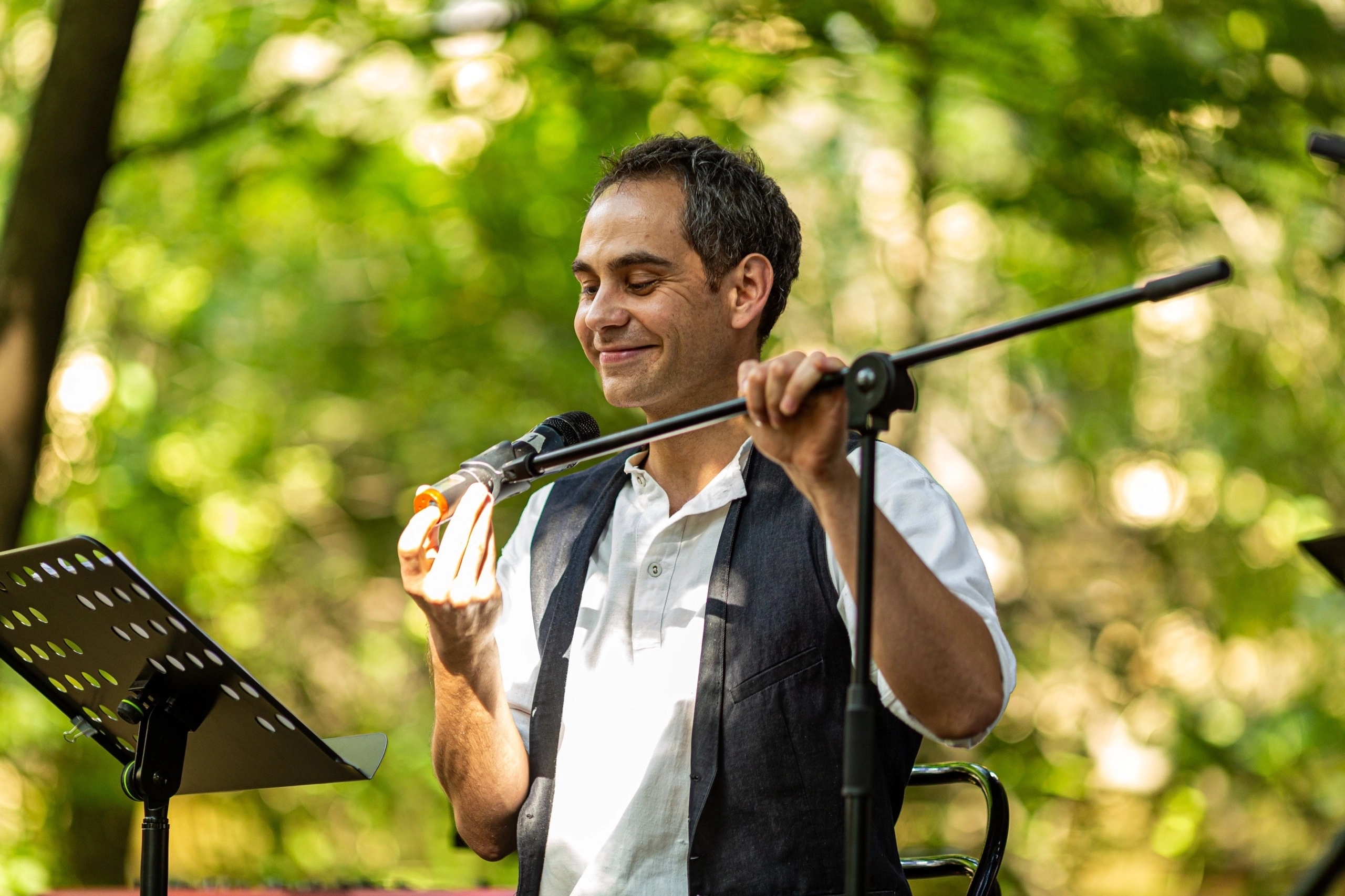 14, 15 и 16 июля сад Фонтанного дома наполнился звуками джаза, а ещё влюблёнными парочками и праздной гуляющей толпой. В 9 раз романтичное поэтическое пространство приняло в свои тенистые аллеи, по которым вальяжно гуляют рыжие коты, музыкальный фестиваль «Бродский драйв». 15 июля любимый всеми виртуоз-контрабасист Владимир Волков (я узнала о нём после выхода фильма «Питер фм» в 2006 году), актер Вячеслав Коробицин, пианистка Наталья Соколовская, саксофонист Аркадий Пикунов представили проект на стыке музыки, театра и литературы «Письма любимым» (нарративный концерт Санкт-Петербург-Москва).
