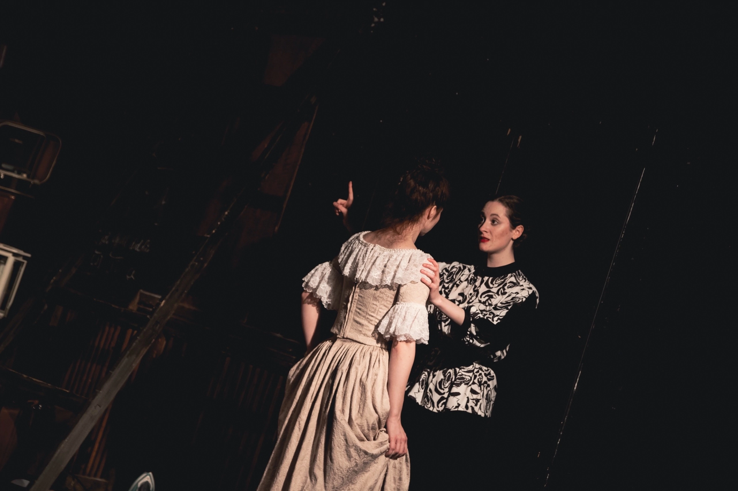 Веронике Рудневой досталась очень сложная роль Аманды — женщины, которая по сюжету много старше актрисы, да ещё и далеко не всегда находится в состоянии психологического равновесия. Для передачи этой нервической неуравновешенности актриса использует главным образом мимику, крайне редко повышая голос, совершенно обходясь без резких движений руками или суетливых перемещений по сцене. Это художественное решение довольно нетипично, и поначалу кажется, что актриса попросту переигрывает, но со временем становится понятно, что это режиссёрская задумка, которая исполняется максимально правильно и точно. Роль Лоры, дочери Аманды, исполняет Анастасия Закачурина, чья актёрская работа является, возможно, самой органичной в этом спектакле. Теннесси Уильямс в своих многочисленных ремарках предлагал, в частности, уделить особое внимание тому, как на героиню падает свет: «Освещение Лоры отличается от освещения других героев необыкновенной и ясной чистотой, свойственной портретам ранних святых или мадонн». Создатели спектакля поработали со светом довольно минималистично (возможно, тут сказалось влияние показа на неродной площадке), но у актрисы и без дополнительных визуальных эффектов, не скатившись в неуместную в этой роли мелодраматичность, получилось передать образ внешне блаженной девочки, в глубине которой спрятаны самые благородные и искренние человеческие чувства, которые могли бы раскрыться гораздо раньше и объёмнее, если бы не жестокость окружающей её действительности, если бы не беззащитная хрупкость её тонкой натуры. Наконец, было бы большой несправедливостью обойти вниманием и работу Сергея Пантелеева, которому выпала меньшая по объёму роль обаятельного и в то же время несколько отталкивающего своим поведением ирландца Джима О’Коннора.