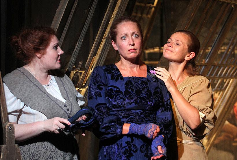 Спектакль Михаила Бычкова «Трамвай «Желание»» в Приюте комедианта был поставлен в 2005 году. Эта постановка построена на выдающихся актерских работах — в первую очередь заслуженной артистки России Марины Солопченко. Она играет роль Бланш — женщины, которая потеряла опору в жизни, пережила предательство, смерти близких. Теперь она может только мечтать, надеяться, полагаться лишь на милость и доброту других людей, а им ведь и своих проблем хватает. Бланш — живой сгусток боли, она приезжает в дом своей любимой сестры, Стеллы-звездочки (Наталья Ткаченко) в поисках последнего пристанища, тёплого крова — вдруг хотя бы отсюда не выгонят. Две сестры, как и сестры Прозоровы, выросли в высшем обществе, в большой красивой усадьбе, с прислугой и гувернантками. Но судьба заставила изменить уклад жизни.