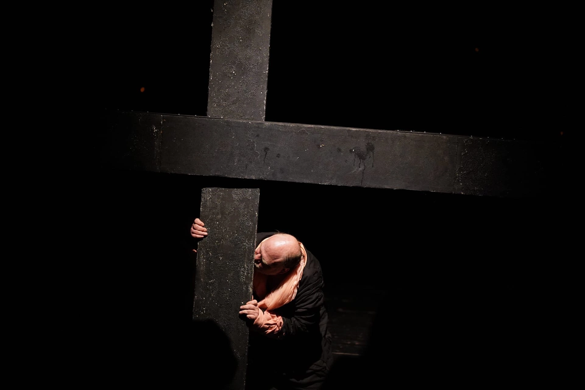 Само повествование спектакля оригинально и удачно организовано. Он начинается с конца, с последней Страстной недели, на календарь которой нанизаны сцены-воспоминания. Смыслом Страстной являются поминовения усопших близких. Заканчивается всё мощной монументальной сценой, в которой Иудушка строит огромный крест на могиле матери. Он приникает к нему, найдя вмёрзшее в лёд яблоко, вздыхает и жизнь его обрывается. Прощён он или нет, мы так и не узнаём. Сверху на него начинаются сыпаться “райские яблоки”.