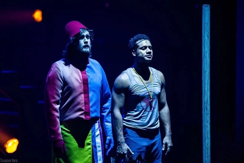 Молодые актеры буквально оглушают потоком бешеной энергии: их перемещения по залу и акробатические номера не оставят равнодушными. В спектакле задействовано все пространство: на сцене – основная декорация с большими буквами «РВ» («Революция, вперед!»); закрытые жалюзи окна – периодически открываясь, символизируют венецианские дома; и даже высокие металлические конструкции с осветительными приборами, на которые герои лихо залезают, становятся частью сюжета. А сами актеры то и дело играют со зрителями, вовлекая их в постановку.