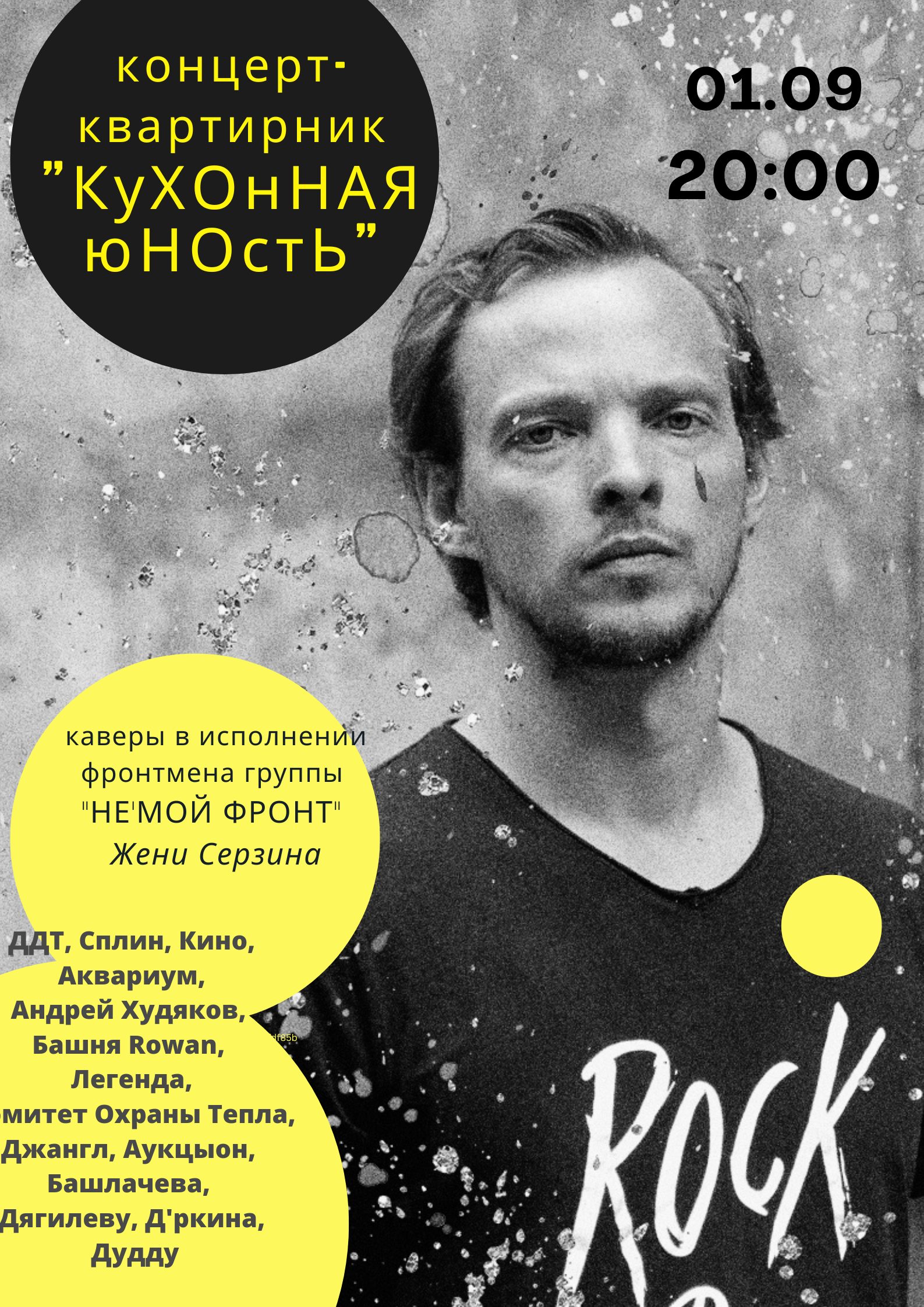 01 сентября (пт) 20:00 Концерт-квартирник Жени Серзина «КУХОННАЯ ЮНОСТЬ»