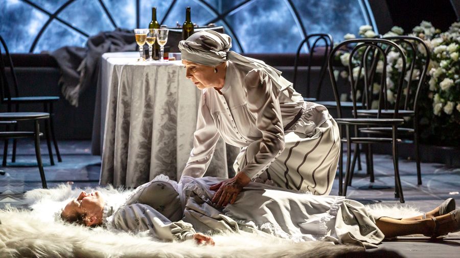 Васса – стержень этого страшного мира. Ее руки дрожат все больше, ноги не держат, «мысли гудят, как осы», а вопросы: «Для чего все?», «Для кого?» настолько мучительны, что становится сложно дышать. В ее жуткой системе ценностей, где ради денег и власти можно поступиться не только совестью, но и жизнью другого человека, она вершит благо. «Не псы дом хранят, мы его храним», — увещевает Васса дочь, пытаясь передать ей свою «мудрость», надеясь на поддержку, понимание и любовь. Но когда эта потерявшая человеческую форму женщина бежит от своих же детей, мечтающих о ее смерти, по лестнице, или одиноко сидит в переломанной позе, взывая к своим отпрыскам: «Любите меня хоть немножко. Многое я не прошу», она не вызывает сочувствия ни у своих детей, ни у зрителей.