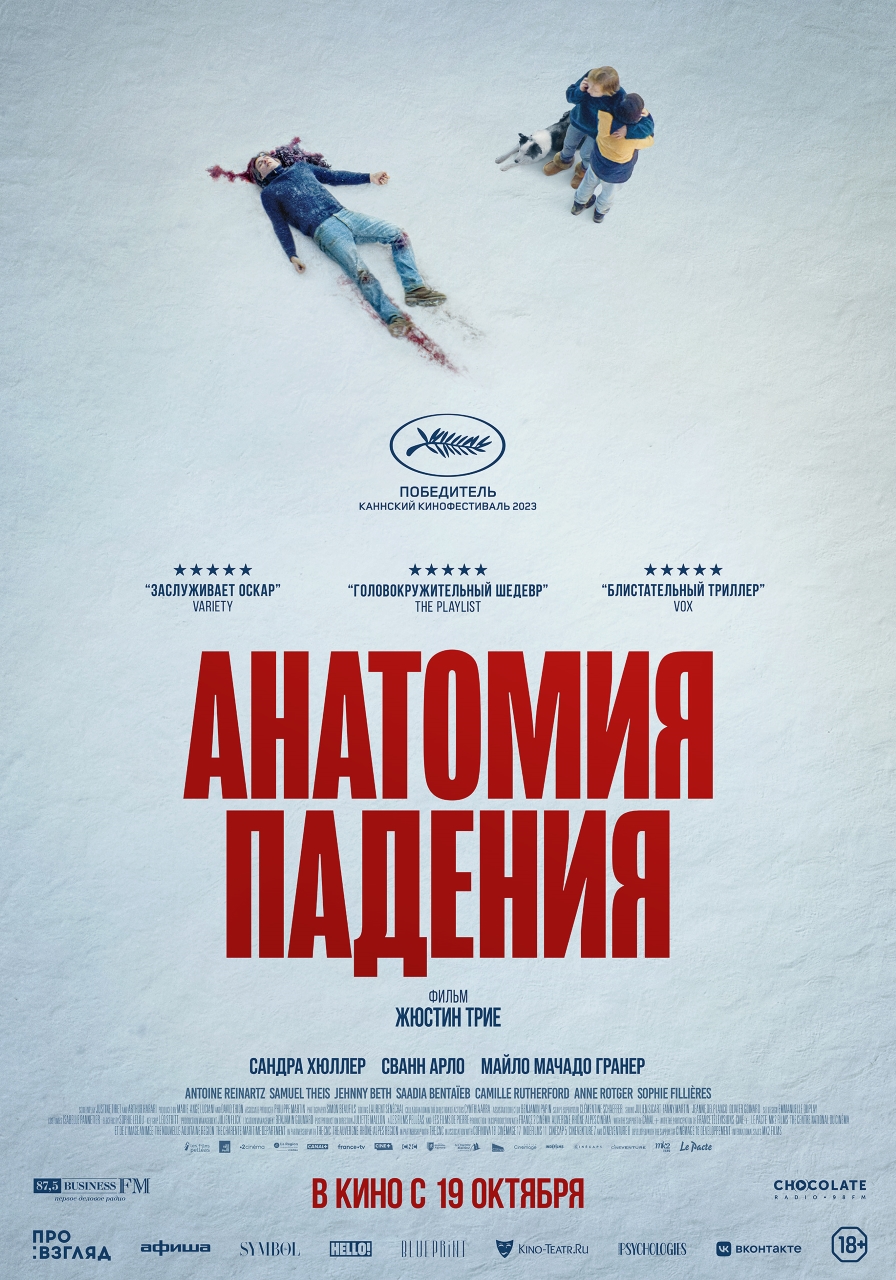19 октября дистрибьютор Про:взгляд выпускает в прокат фильм-событие года — победителя Каннского кинофестиваля 2023, обладателя Золотой пальмовой ветви — фильм «Анатомия падения» режиссера Жюстин Трие.