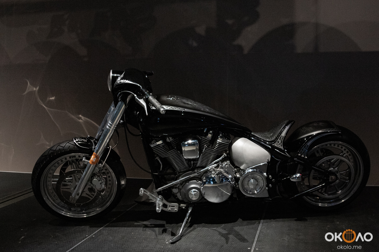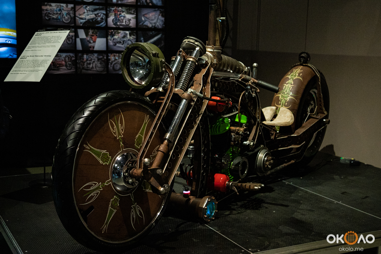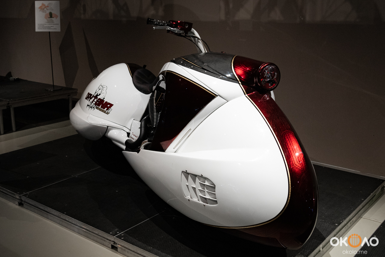 Е. А-М.: Каждый мотоцикл — художественное произведение, которое было создано исключительно для его будущего владельца. Как ювелирное произведение, когда оно создаётся с нуля для какого-то конкретного человека. Ровно так работают и эти мастера. Те мастера, которые уже вышли на определенный уровень. Более того, это, конечно, все изначально начиналось в этой индустрии, когда-то с гаражных мастерских, но сейчас все ателье, которые у нас представлены, имеют международную известность. Рядом с каждым мотоциклом установлен информационный стенд, где можно посмотреть, какие конкурсы он выигрывал и в России, и за рубежом в рамках кастомайзинга и даже в рамках гоночных турниров! То есть эти машины не просто красивые, брутальные или, наоборот, элегантные или какие-то ещё. Как минимум этот, например, весь раздел концептов, размещенный на стенах музея, он дико футуристичный. И эти модели тоже совсем скоро будут для кого-то воспроизведены.