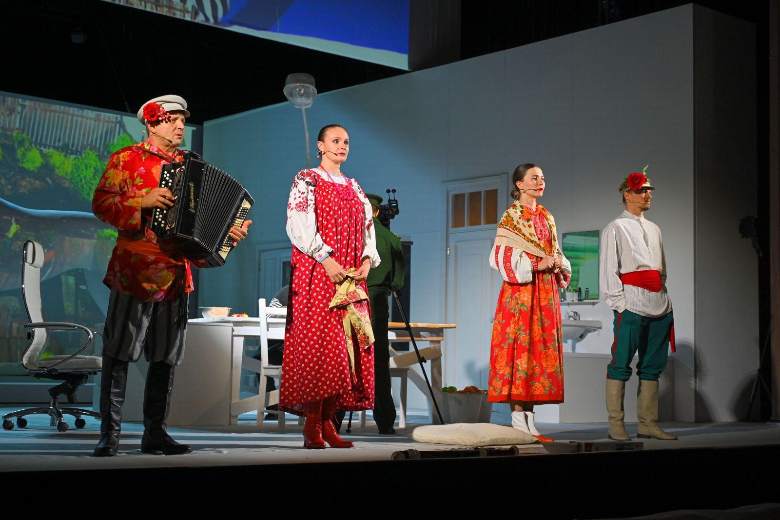 Все три пьесы по фабуле совсем не похожи друг на друга, но Пётр Юрьевич мастерски извлекает из них прописные истины, которые заложены внутри нас и позволяют нам оставаться людьми, даже в тёмные времена. Это буквально прорывается в сцене, где артисты в национальных костюмах пропевают свои реплики. Это не китч и не фарс, они делают это искренне и серьёзно, заглядывая в нашу идентичность. Чем же всё кончается? Яблоня срублена, пазл почти собран, огромная белая собака срывается куда-то в поля, мигают фонари на аллее. Они вот-вот погаснут. Мрак окружающего мира готов победить, но у нас глубоко внутри всё ещё есть ясное августовское небо с огоньками звёзд.