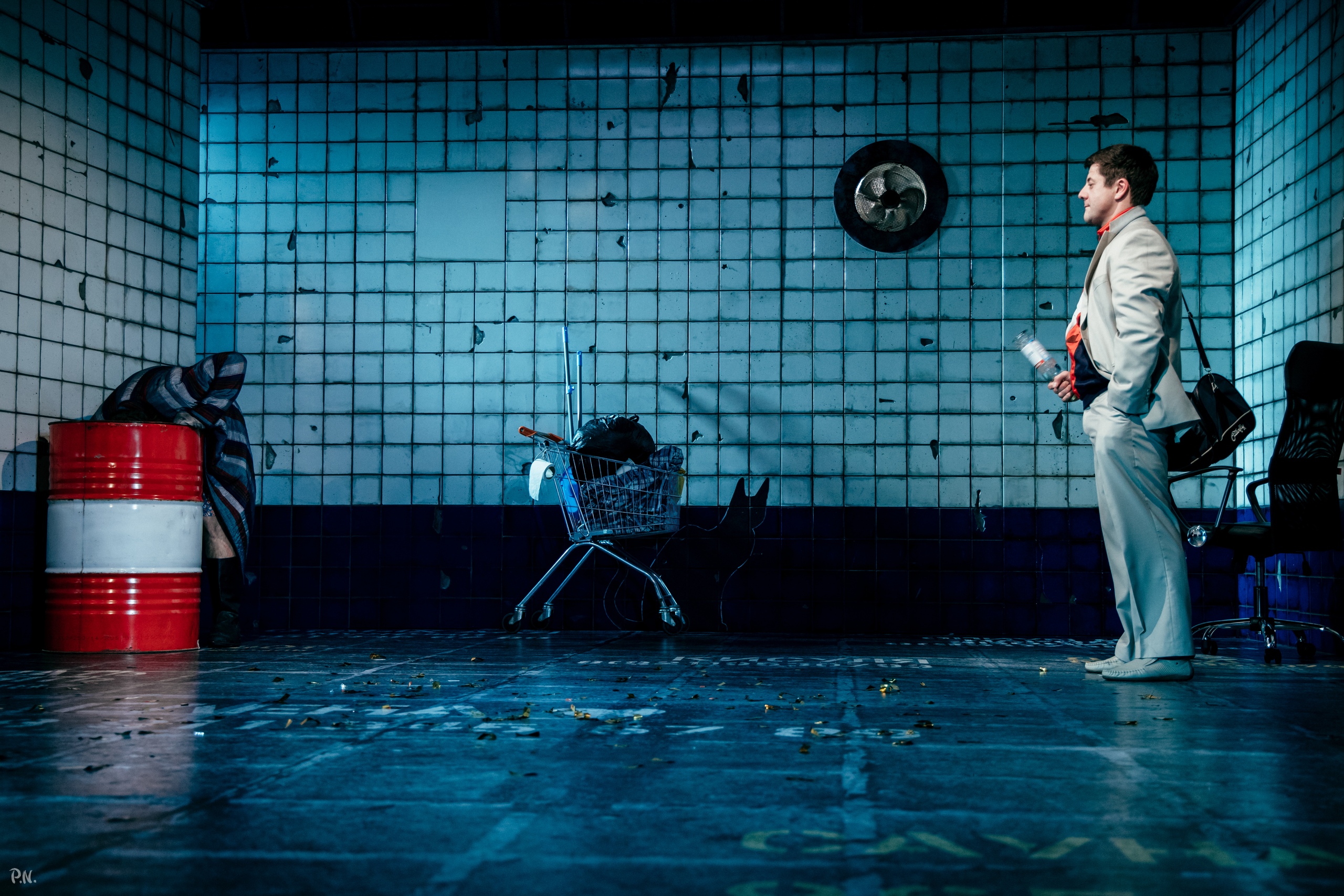 «Киса» Семёна Серзина в Приюте комедианта (премьера 2020 года) — это смешное и трогательное живописание бесприютной и обречённой страны. Сцена будет казенным домом: больницей или вокзалом — вокруг голый неуютный кафель. Мы будем жить в окружении грязных стен, облепленных разноцветными прямоугольниками полуистлевших объявлений, в которых люди ищут дом, пристанище, свой путь. Это убогое пространство для нас украсят золотым конфетти, в нём споют и станцуют. Его будут обживать. Старый мир рухнул, на его руинах граждане новой страны пытаются построить новый, да и просто выжить, не умереть от голода, не оскотиниться, остаться людьми.