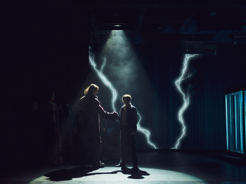 Но, если отвлечься от схожести с предыдущими постановками театра Музкомедии и сосредоточиться на новизне, то сразу бросается в глаза совершенно другая сценография. Если в предыдущих мюзиклах это были роскошные, постоянно сменяемые декорации, то здесь царствует минимализм и простота. Несколько скамеек, превращающиеся то в операционный стол, то в гробы, то в кафедру и… на этом всё. По сути, пустое пространство сцены. Основное оформление тут заключается в резком прозекторском свете (художник по свету Иван Виноградов) и экранах – прием, часто используемый последние годы во всех театрах страны. На этих экранах (художник-аниматор Илья Старилов), расположенных с трех сторон и образующих «коробку», транслируется нужный контент, мгновенно создающий нужную атмосферу. Подобный прием Алексей Франдетти максимально плотно использовал в другом своем мюзикле – «Дорогой мистер Смит» в петербургском театре «Приют Комедианта». С одной стороны, это создавало впечатление упрощенности картинки, а с другой подкупало своей простотой и эффективностью – зачем нагромождение декораций, если основное происходит в душе героев и в их поступках. За зрелищность отвечали также взрывы, молнии и открытый огонь в сценах оживления Создания и Элизабет.