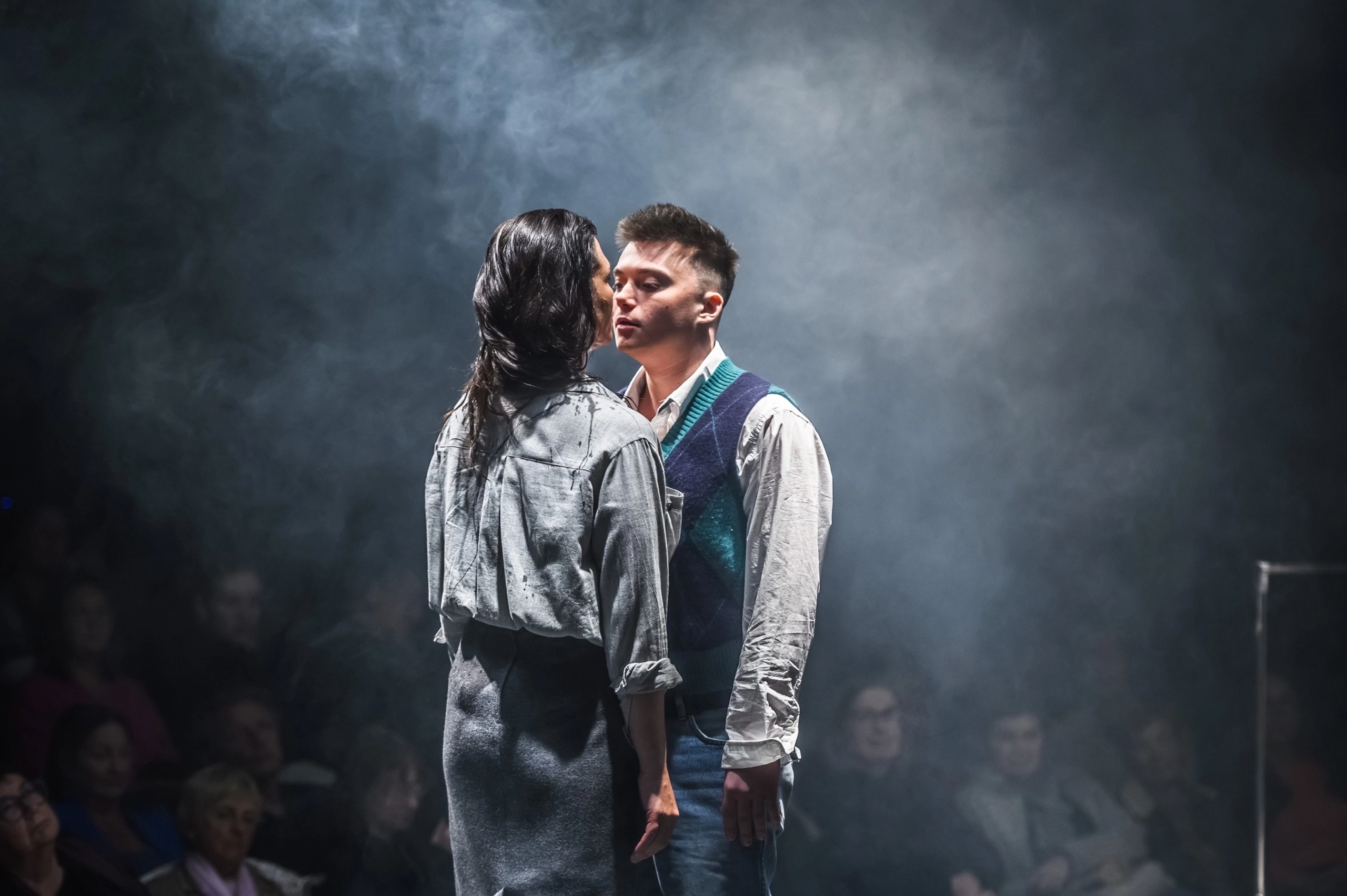 Чего не скажешь о герое Ивана Конкина. Всё же он младше своей опытной возлюбленной, для него это первое такое сильное чувство – не просто физиология, как с девушками-сверстницами, а именно что-то новое, незнакомое и подминающее под себя. Финальные его слова таковы, что закрадывается сомнение, – а сможет ли он жить дальше после таких эмоциональных потрясений?.. Концовка спектакля не дает ответов.