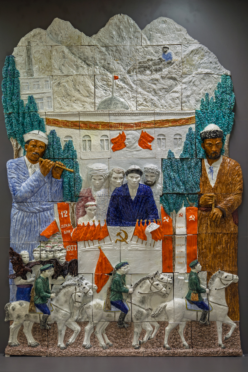 Одна из редких и самобытных работ, представленных в экспозиции, – монументальное керамическое панно «Праздник» И. Г. Фрих-Хара, созданное в конце 30-х годов ХХ века. Произведение, в котором соединились элементы разных стилей, разнообразные приемы лепки, многоярусный принцип построения композиции, более 10 лет проходило реставрацию в Екатеринбургском музее изобразительных искусств (ЕМИИ). При поддержке ЦВЗ «Манеж» весной 2023 года реставрационные работы были завершены, и впервые после восстановления скульптура будет представлена посетителям.