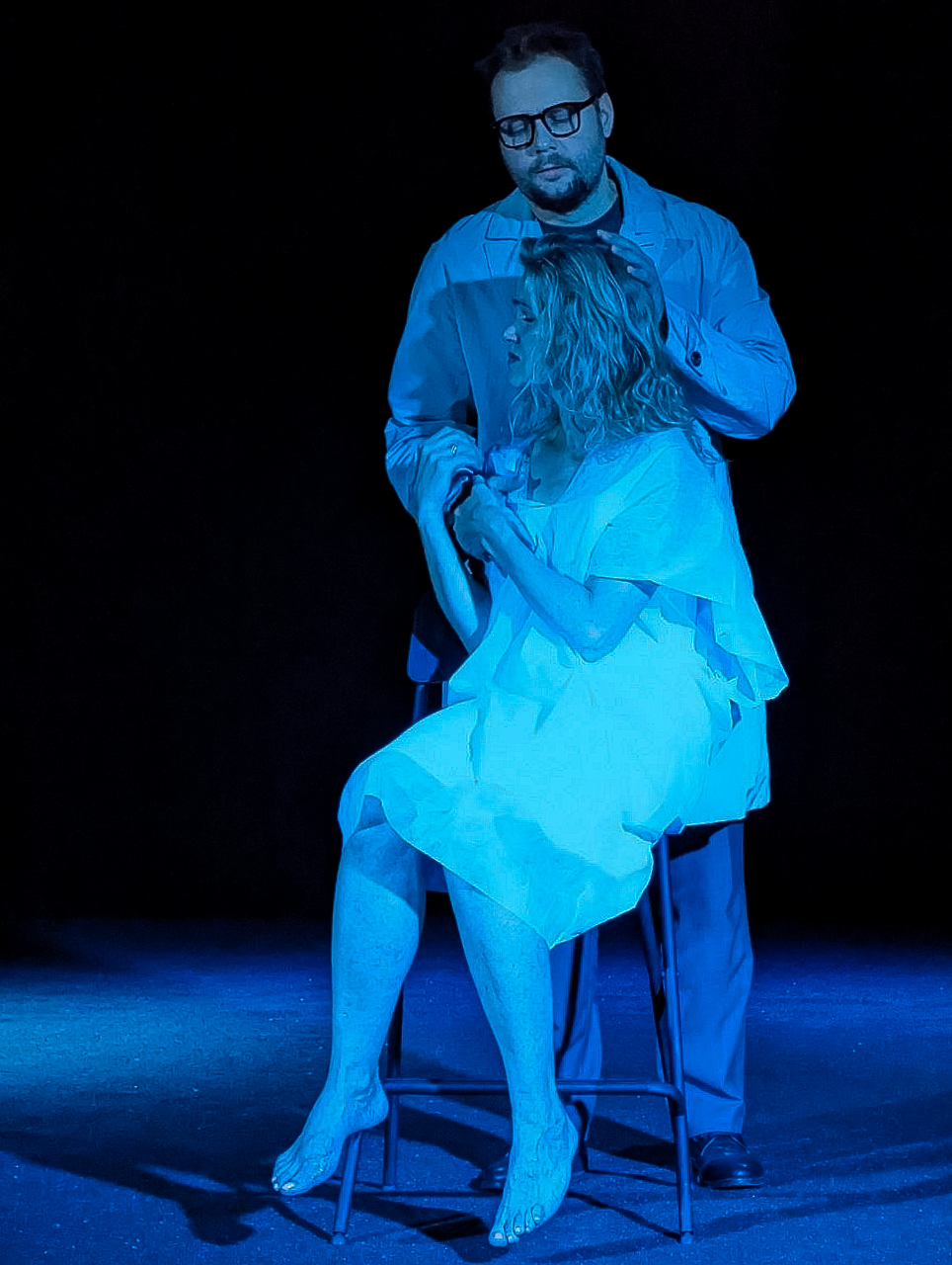 Л.М.: Мы старались очень бережно относиться к первоисточнику и ничего не менять. Не производить, скажем, каких-то экспериментов, например, менять ролями женщину и мужчину, как-то по-новому прочесть текст и т.д. Мы просто попытались расширить эту тему, привести её к документальному, естественному состоянию, чтобы это не выглядело слишком театрально, перенеся принципы кино на сцену. Меня в своё время сильно впечатлил документальный фильм Дираджа Аколкара «Лив и Ингмар», в котором Лив Ульман очень трепетно и нежно рассказывает о Бергмане-человеке. У них были очень трогательные, интуитивные личные взаимоотношения. Например, Лив приезжает к нему спустя много времени после того, как они расстались, и Бергман спрашивает её: «Почему ты решила приехать ко мне сегодня? Что случилось? Мы не виделись уже так много времени!» И Лив ответила: «Потому, что ты меня позвал» И в ту же ночь Бергмана не стало… Я верю в то, что у людей, связанных друг с другом, есть какая-то особая, тонкая настройка; стоит подумать о другом, и он окажется рядом… когда не нужно много слов.
