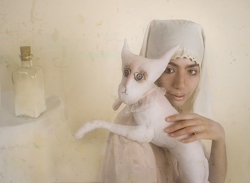 М.М.: Несмотря на то, что в серии «Игрушки» многие куклы сделаны непосредственно «под модель», я фотографии никогда не сочиняю и не придумываю заранее. Глядя на человека, я извлекаю из бытия или сама изготавливаю какие-то предметы, артефакты, арт-объекты, которые должны с ним резонировать. Например, работа «Подкидыш» — это этюд. Я вышла выносить мусор, увидела на помойке сломанную куклу и поняла, что она войдет в кадр. В результате был создан один из самых цитируемых портретов. То же касается и портрета «Фрида», который мы снимали в Португалии во время гастролей театра. В Португалии очень интересные помойки. Там наши актеры находили старые стулья, антикварные вещи, а мне не везло, и я не нашла ничего. В конце концов актеры сказали: «Анна, мы кое-что для тебя нашли» и притащили меня к месту, где располагался большой, красный и очень советский диван. Это было забавно. Но чтобы утешить меня по-настоящему, муж на соседней барахолке купил мне обломки антикварных кукол. С ними мы сняли целую серию фотографий. Так что вообще-то у каждой фотографии четыре соавтора: фотомодель, фотохудожник, зритель и фатум, который моделирует ситуацию.