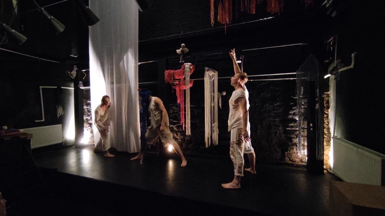 Спектакль поставлен с сильным акцентом на пластику – актеры почти ни на минуту не останавливают свой обрядовый танец, перемещаются по сцене, пританцовывают, спускаются ближе к зрителям. И все это действие оттеняется точно выверенным и подобранным музыкальным сопровождением – «Runa Project», «Zventa Sventana», «Vetkafolk»… Это все коллективы, в работах которых органично переплетаются аутентичный фольклор и современная электронная музыка. Всего на один час скоморохи погружают зрителей в мистический мир обрядов и сказок – сказок часто кровавых, но по-своему завораживающих. Но вот свет мигнул в последний раз – тут и сказке конец, а кто слушал (читал) – молодец.