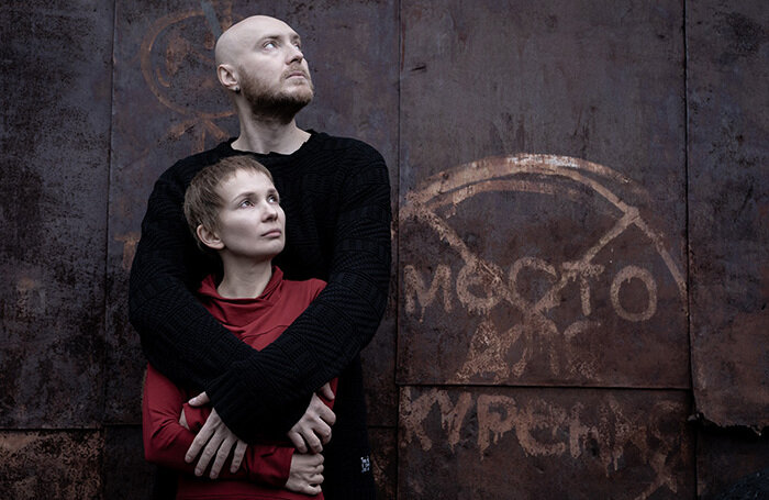 Я не просто так начала именно с текста, потому что звук — главный инструмент в этом спектакле. Это тот редкий случай, когда связка режиссера — сценографа — драматурга — музыканта сработала идеально слаженно. Музыку писал Пётр Айду, а Бондарь (она — и режиссёр, и художник) сделала такую декорацию, которая и визуально очень атмосферна, и работает как музыкальные инструменты — вызывающая тревогу арматура, которой опутана вся сцена, становится инструментом, по которой стучат молоточками, издавая разные звуки. И так же с жестяными огромными листами — то ли они пулями помяты, то ли музыкальными молоточками. Пространство буквально звучит каждую секунду — то тревожно, то как колокольный звон, то как набат. Оно буквально воет от происходящего вокруг апокалипсиса.