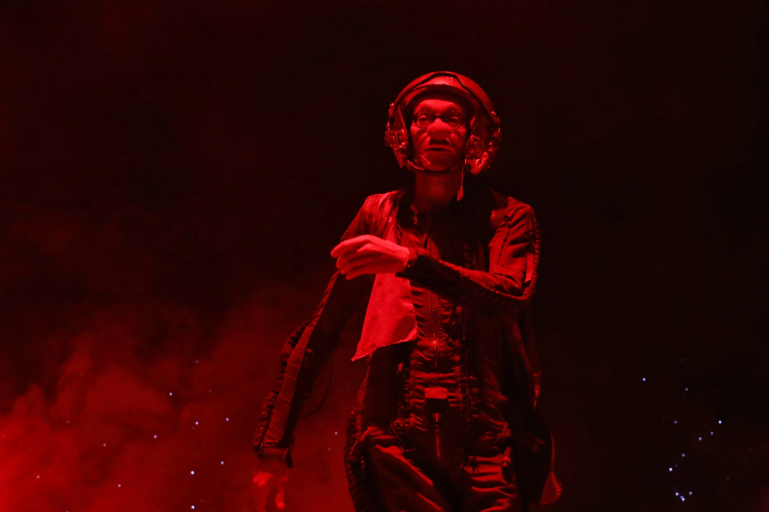 Ткань ревю – эксцентричные гэги, доводящие происходящие на сцене до полного абсурда – кажется, дальше уже двигаться просто некуда, ан нет – Лицедеи удивляют до последней минуты. Чужаки и чудаки, безумцы и фрики, но при этом всегда симпатичные на уровне восприятия. Они – часть нашей жизни. Вот выходит хромающая и причитающая клоунесса Наталья Кейхель с капканом на ноге – и вдруг как запоет хит Сии «Chandelier»! Да как заиграет на пианино! Но как только она снимет капкан, то голос у нее пропадает и вдохновения нет. Вывод – настоящий талант, настоящий художник должен страдать, быть чем-то постоянно недовольным, тем самым пробуждая свое вдохновение.