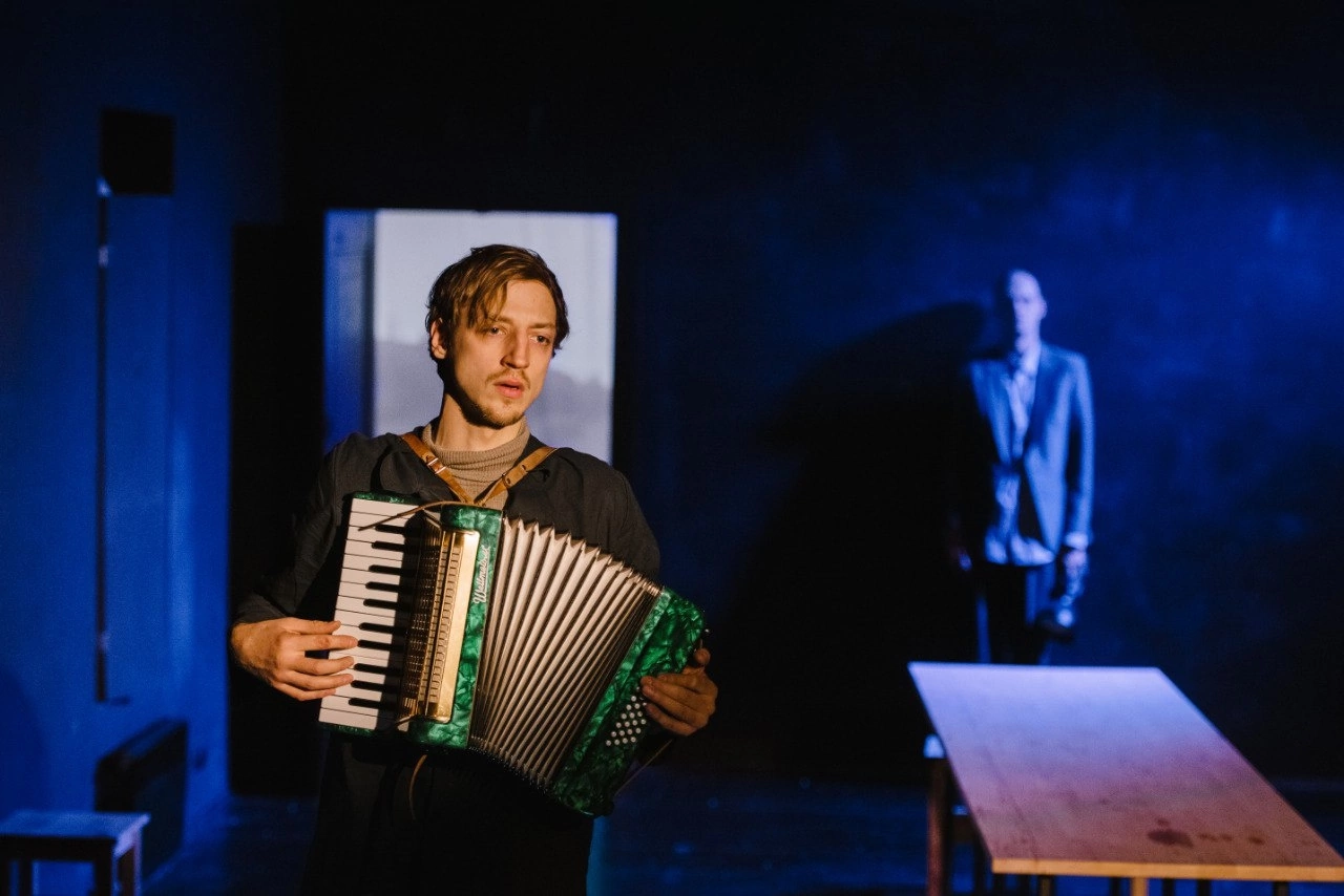 Актеры — недавние выпускники Мастерской Олега Кудряшова. И, кажется, они ещё слишком старательные — я, сидя в первом ряду, прямо видела, как они тщательно артикулируют каждое слово. Понимаю, что, видимо, это была режиссёрская задача — чтобы подчеркнуть все «странности» и метафоры текста — но, по-моему, это работает ровно в противоположную сторону.