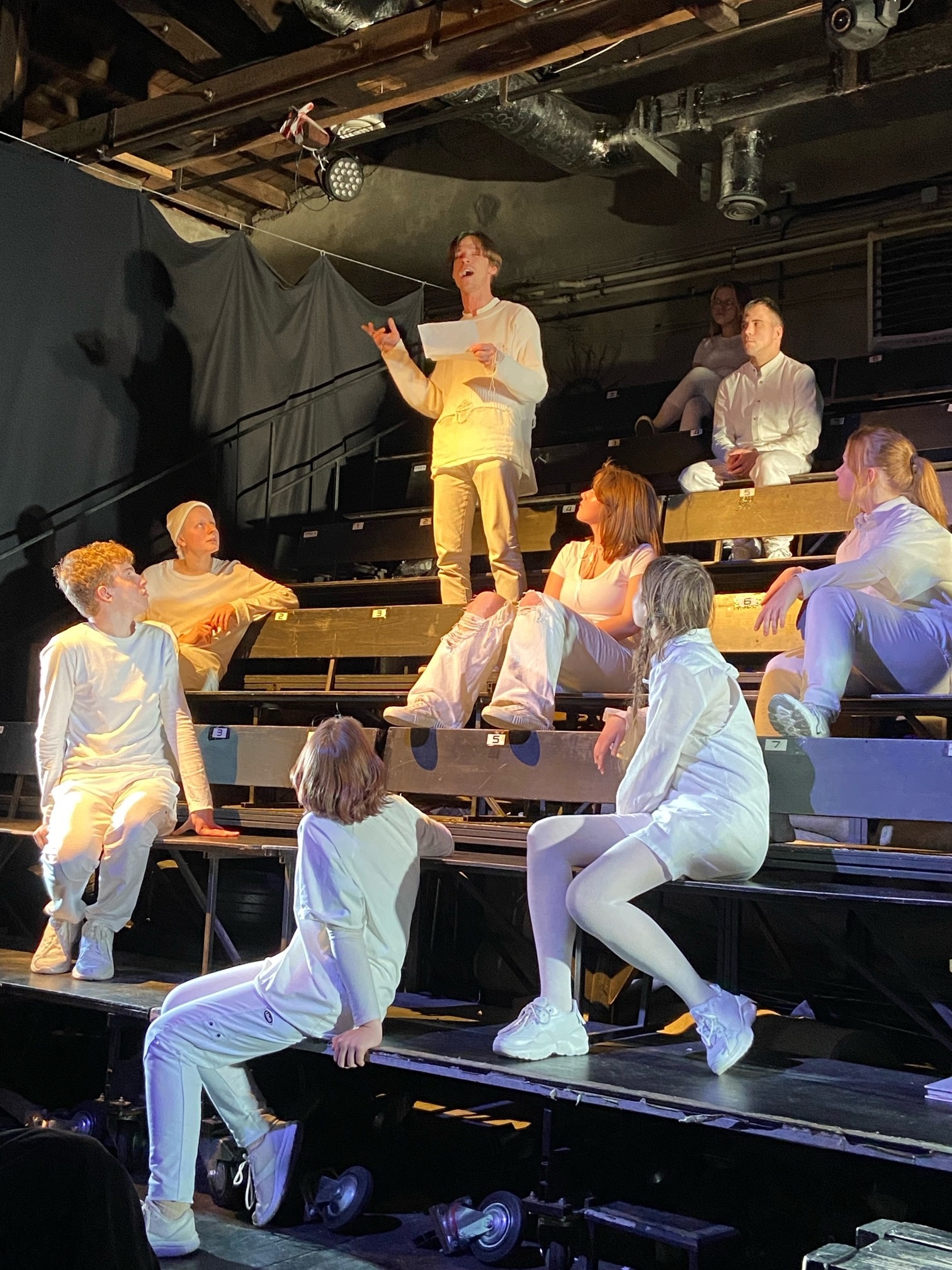 “Вы будете сидеть на сцене, это такой концептуальный спектакль” — предупреждает Дима Крестьянкин перед началом. Мы на премьере (уже девятой!) “Театрального дома” — проекта фонда «Подари мне крылья», поддерживающего подростков с опытом сиротства и из детских домов.