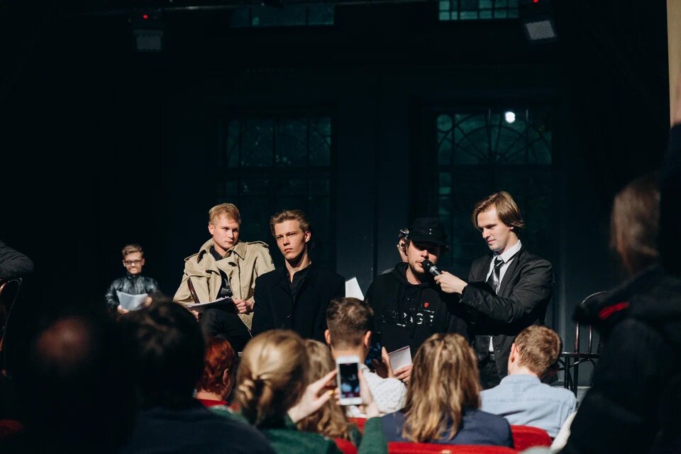 Иммерсивная читка славится мощным кастом в первую очередь: новые лица, и любимые бызята: Иван Капорин (меня тут в одном чате назвали поклонницей Капорина и отменили, хотя про Ваню я не сказала ни слова), Максим Сапранов, Иван Ивашов, Иван Вальберг, Иван Савинов, Юрий Дементьев, Валерия Ермошина, Елена Сохацкая. Ещё один участник происходящего — город, из огромных окон видно Неву, огоньки на той стороне (Стикса), в тексте и лодочник появится, новогоднее убранство.