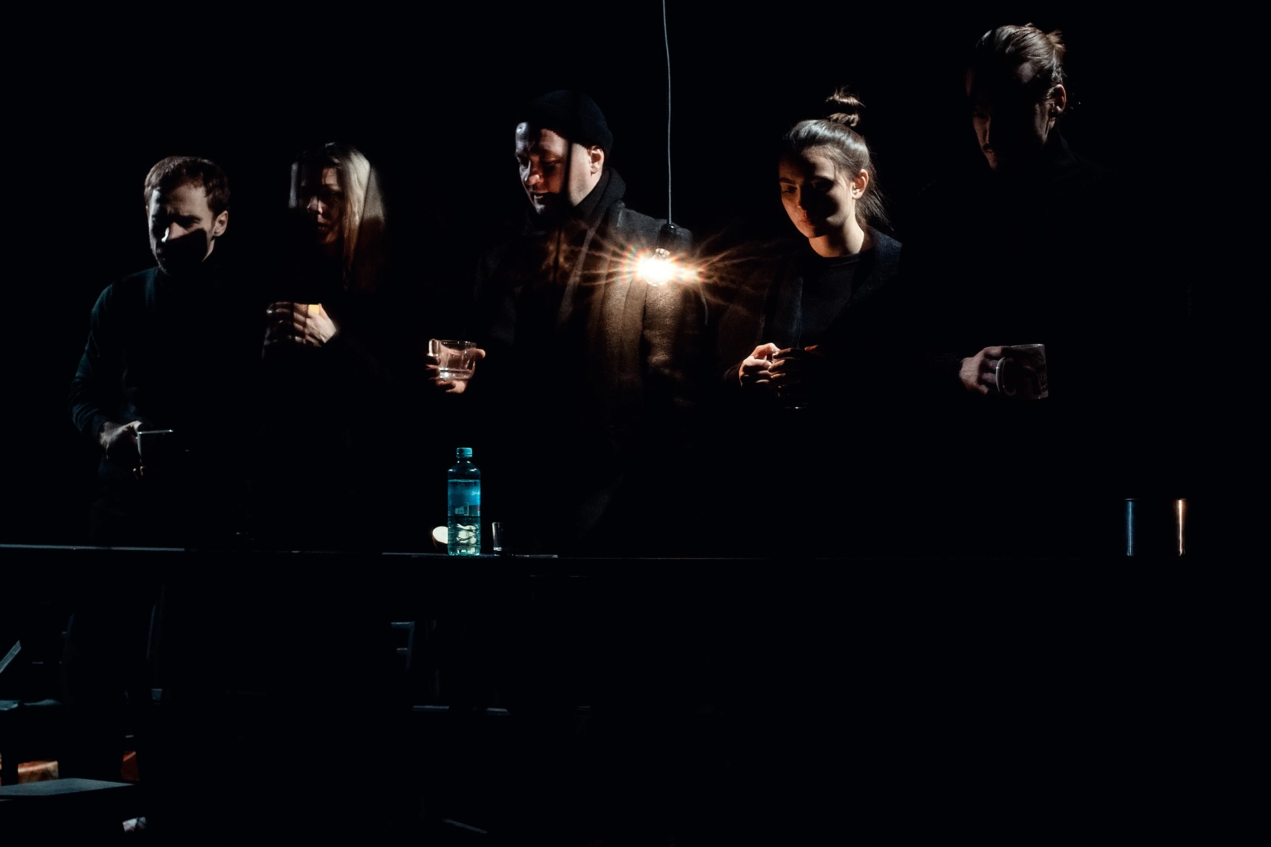 16 и 17 декабря театр “Суббота” пригласил первых зрителей на спектакль “Маленькие трагедии”. Показ был озаглавлен как “репетиция со зрителями”, а премьера назначена на 12 января 2024 г. Очевидно, за месяц спектакль может измениться (он явно претерпевает сокращения: в программе было заявлено 3 часа 20 мин., а в первый же вечер уложились в 3 часа, включая антракт). Представленная нам версия выглядела вполне законченной, а привычные мне признаки прогона / work in progress отсутствовали: не было вступительной речи режиссёра (спектакль ставит главреж театра Андрей Сидельников), а поклоны и цветы, наоборот, имелись. Так что подзаголовок “репетиция” можно было и не заметить, или усмотреть в нём отсылку к золотомасочному «Моцарт «Дон Жуан». Генеральная репетиция»: здесь истории тоже вкладываются одна в другую, хоть и не так радикально.