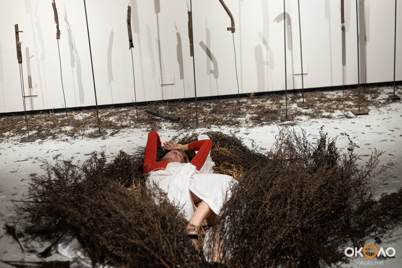 Алёна Ковалли: В данном проекте именно локация выставочного пространства и вдохновила, и определила общую концепцию выставки. Flux расположен в крайне нестандартном месте, буквально на границе двух миров — уплотнительной застройки Парнаса и Шуваловского парка, который по сути — настоящий лес, с вековыми елями и дикими животными.