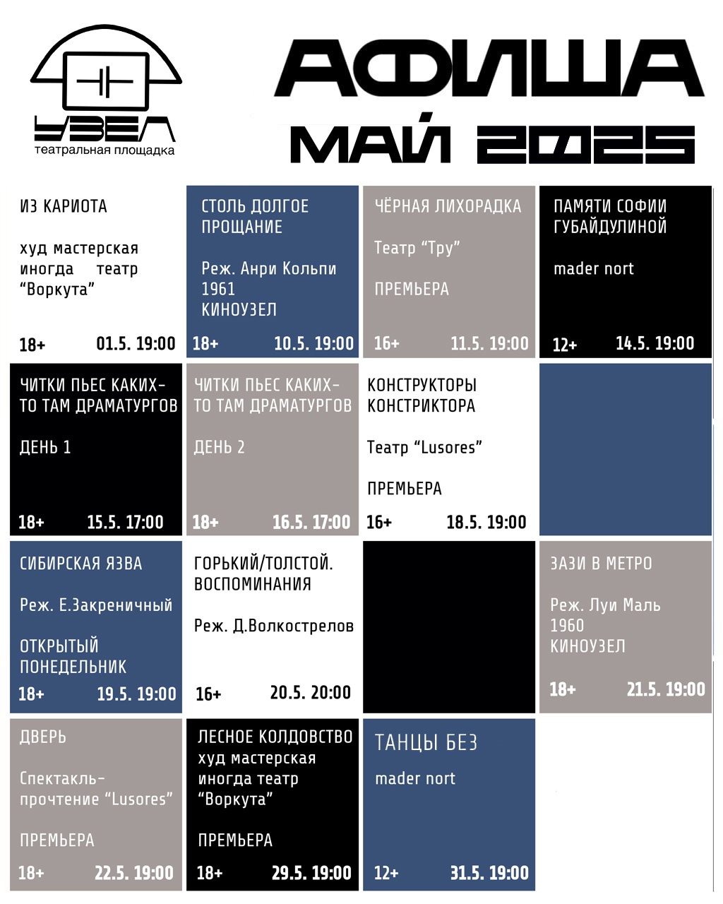 Рассказываем о спектаклях, концертах и фильмах, которые можно увидеть на Площадке Узел в мае.