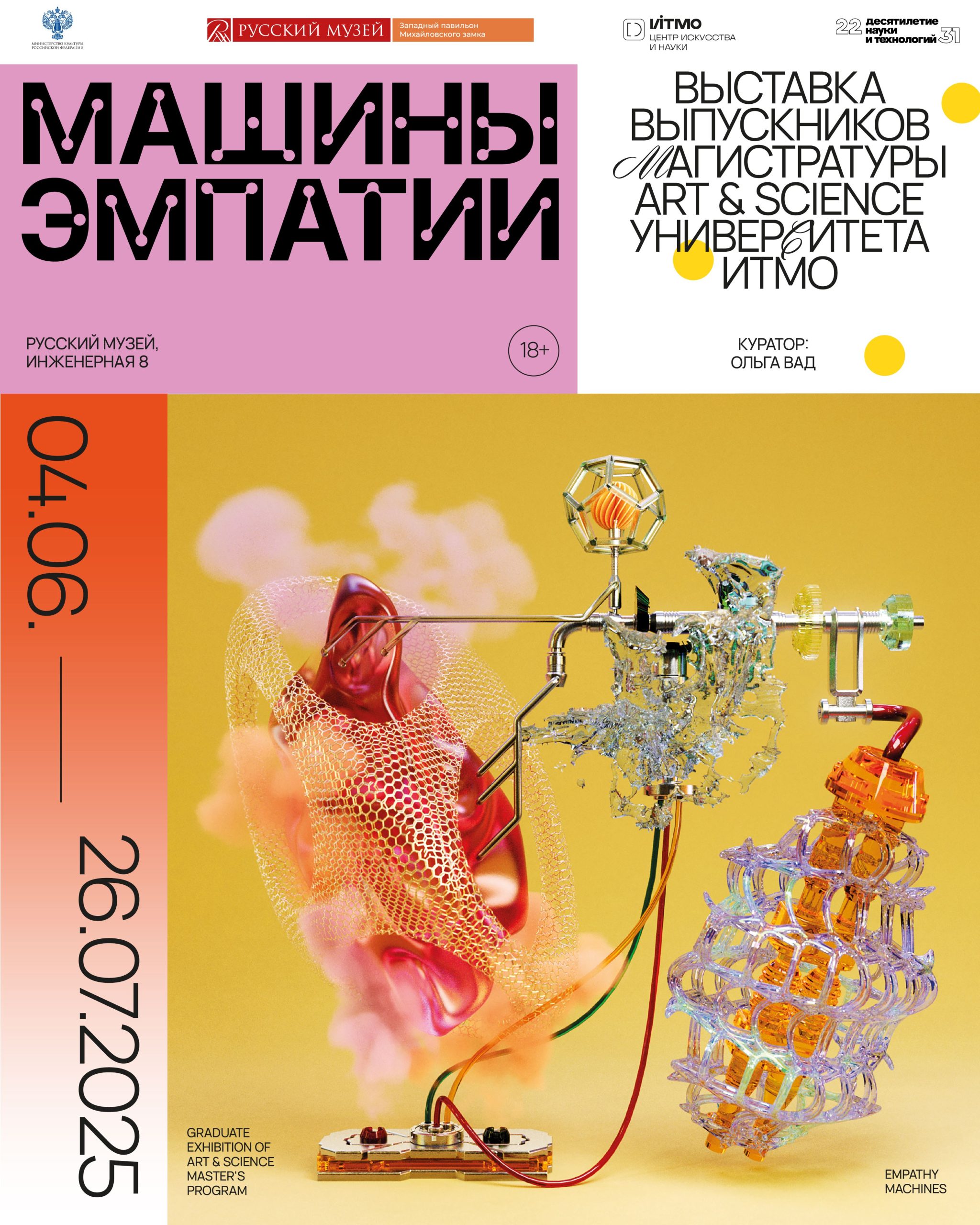«Машины эмпатии» — выставка шестого выпуска магистерской программы — исследует, как в искусстве новых медиа пересекаются человеческие эмоции, технологии, искусственный интеллект и биологические процессы. Экспозиция обращается к главным вопросам современности: что значит быть эмпатичным в эпоху технологического прогресса? Как цифровые системы влияют на способность человека к сопереживанию? Могут ли машины не только имитировать, но и усиливать чувства людей, развивать в них гуманность и эмпатию?