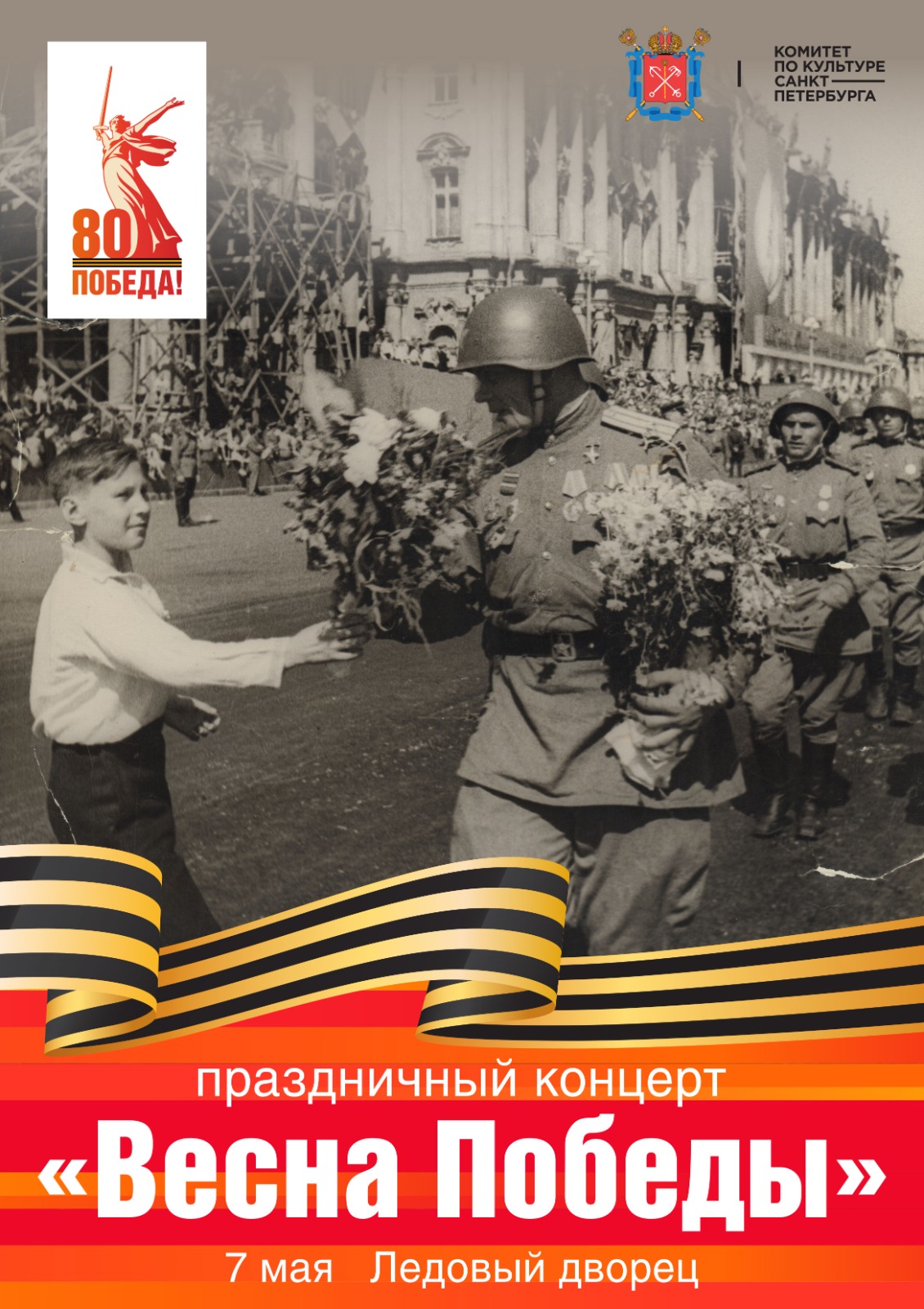 ПРАЗДНИЧНЫЙ ГАЛА-КОНЦЕРТ «ВЕСНА ПОБЕДЫ» С УЧАСТИЕМ ЗВЁЗД ЭСТРАДЫ И ЦИРКОВЫХ АРТИСТОВ, ПОСВЯЩЁННЫЙ 80-Й ГОДОВЩИНЕ ПОБЕДЫ СОВЕТСКОГО НАРОДА В ВЕЛИКОЙ ОТЕЧЕСТВЕННОЙ ВОЙНЕ состоится 7 мая в 14.00 и 18.00 в Ледовом дворце.