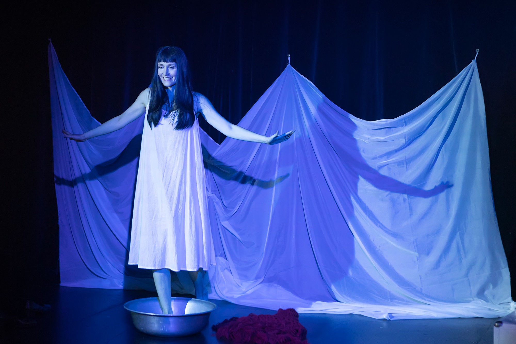 «Три мужа, три судьбы, переплетенные в личном танце с музой». Актрисы переключаются между состояниями и ролями с тонкой психологической точностью. Благодаря камерному пространству происходящее было интимным и вовлекающим. Зритель будто оказывался внутри событий. Героини не только обращались в зал, но и активно взаимодействовали с ним, стирая границу между сценой и реальностью.