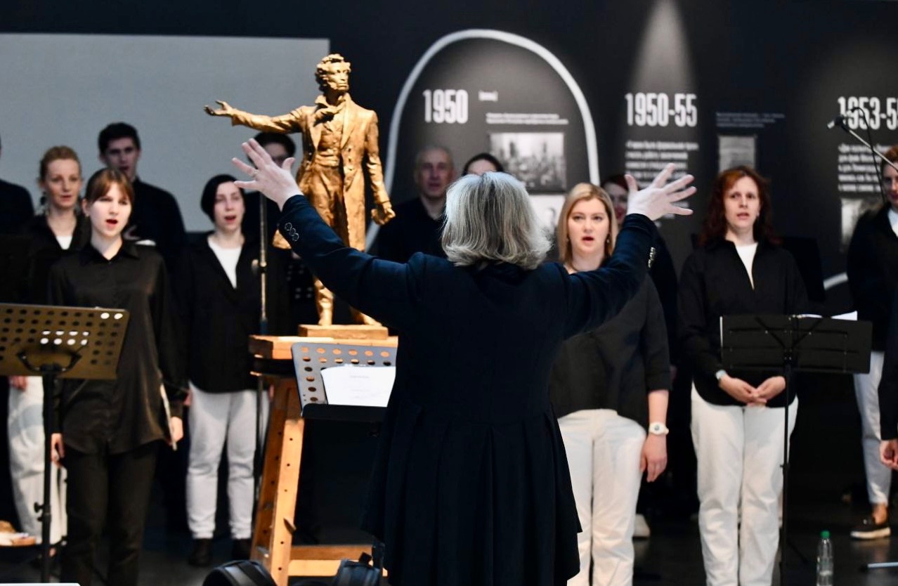 А накануне был другой концерт — в мастерской М.К. Аникушина пел камерный хор «Fortis». Художественный руководитель и дирижер — Екатерина Андреева. Петь — неудачный глагол. Он совершенно не подходит для того, что мы услышали в мастерской. Шёпот, крик, смех — да. Пения не было, это же НОВАЯ музыка. Развлечение, требующее огромного терпения и любознательности.
