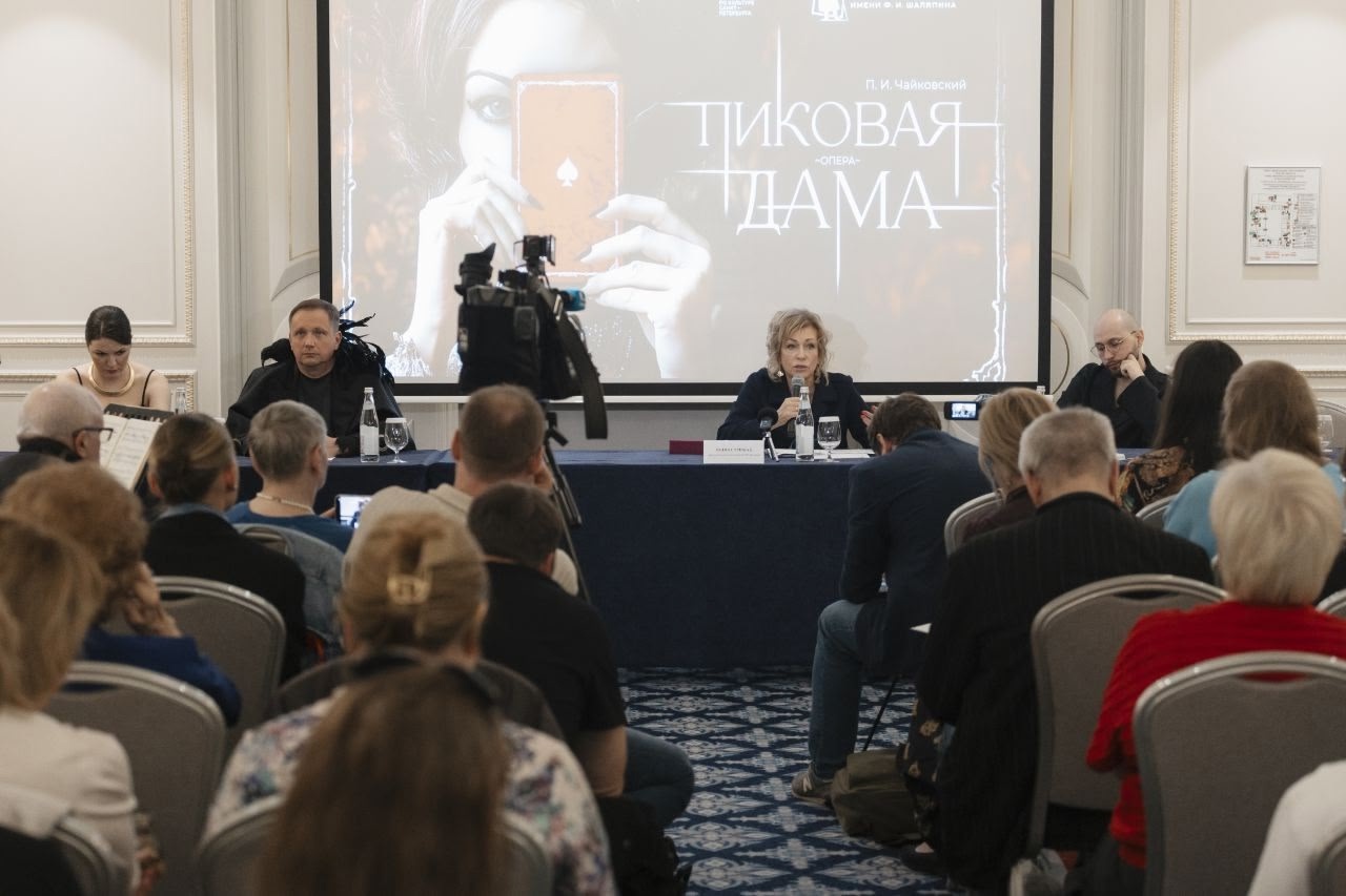 В пресс-конференции приняли участие художественный руководитель театра и музыкальный руководитель постановки Фабио Мастранджело, директор театра Юлия Стрижак, режиссер спектакля Илья Архипов, а также солисты — Виталий Серебряков (Герман) и Елизавета Михайлова (Лиза).