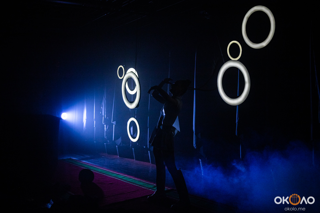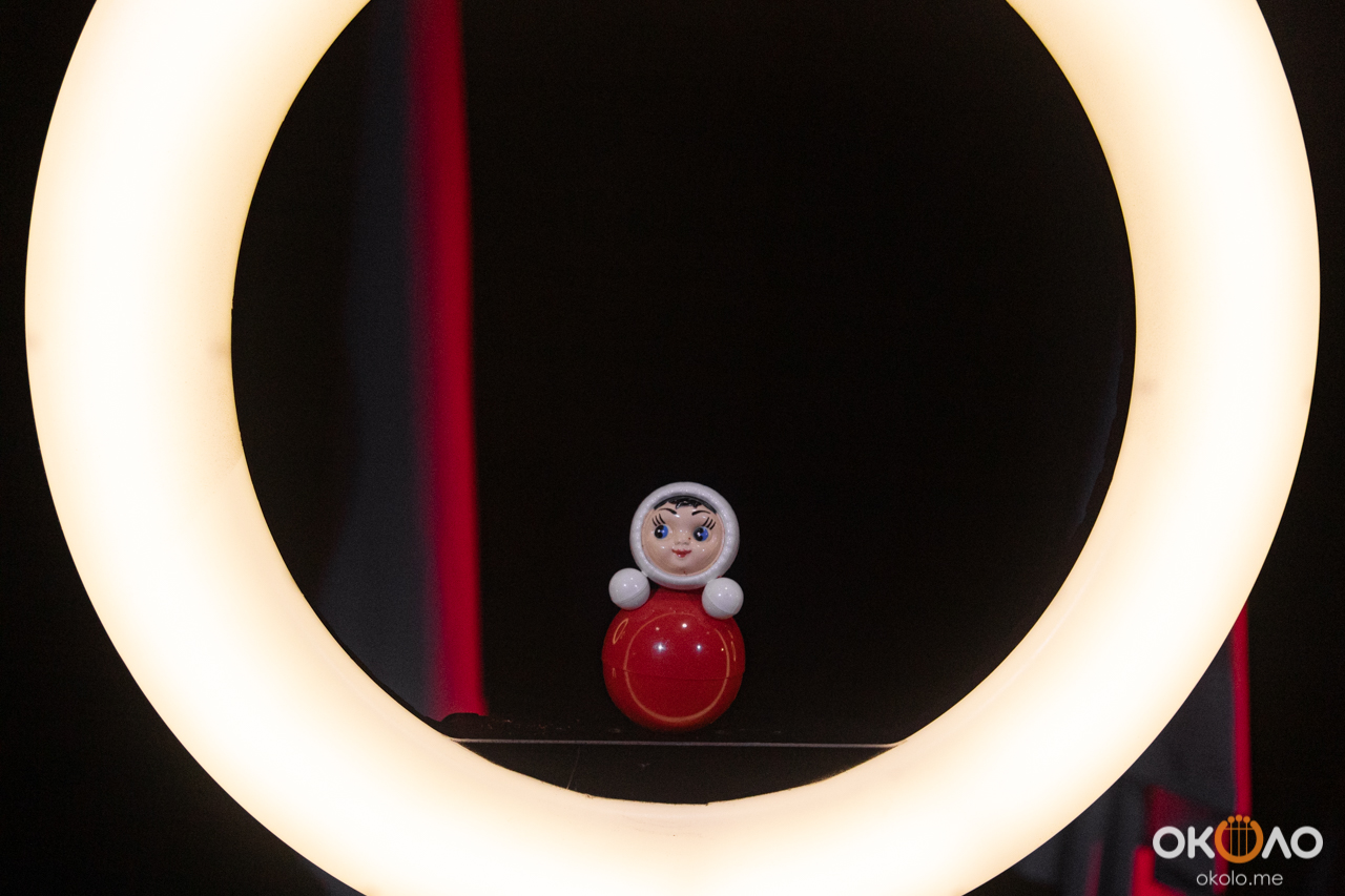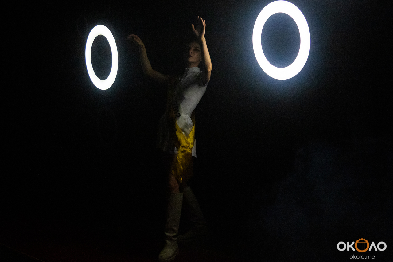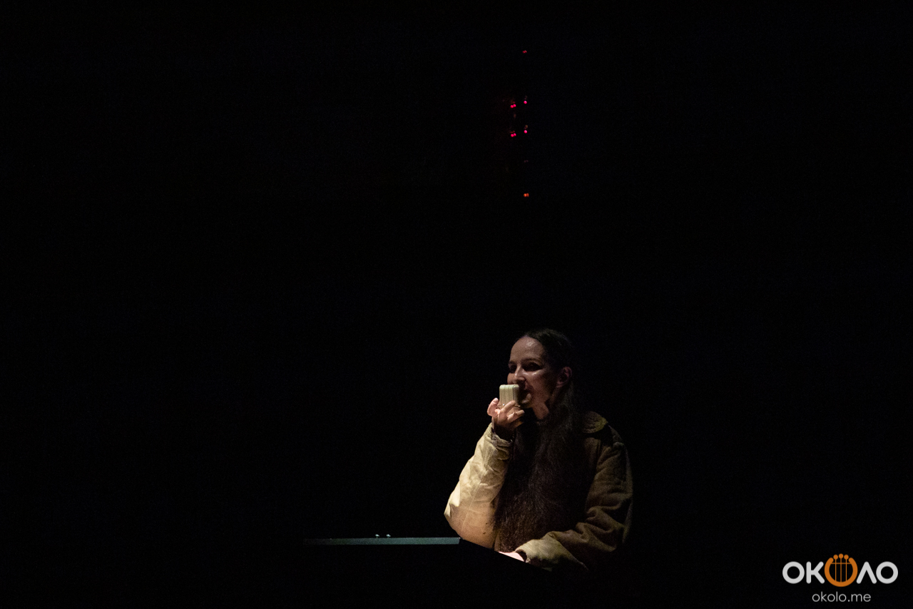 Если к переработанным текстам Брэдбери и их подаче вопросов нет, то некоторые режиссерские решения и приемы их все же вызывают. Когда зрители занимают свои места, на сцене уже сидит завернутая в несколько слоев одежды фигура, затем она встает, начинает раздеваться, и под одеждами оказывается Мисс Марс. Сюрприз, безусловно, приятный, но что он должен символизировать, если должен, конечно — загадка. Та же Мисс Марс подносит каждому спикеру стакан воды на подносе, обязательно пронося каждый стакан сквозь один из круглых осветительных приборов. С подносов очень красиво сыпется красный марсианский песок — отличная находка, играющая на атмосферу, но к чему этот пронос стаканов через светящиеся круги, опять же, загадка. Время от времени очень камерное пространство заполняли довольно плотным дымом, что кажется излишним и немилосердным ни по отношению к артистам, ни по отношению к зрителям.