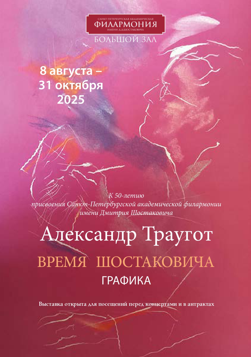 На выставке «Александр Траугот. Время Шостаковича. Графика», посвященной 50-летию присвоения Петербургской филармонии имени Д. Д. Шостаковича, представлены станковые произведения, созданные мастером с середины 2010-х по 2025 год. Это иллюстрации, преимущественно неопубликованные, для монографии Елены Матвеевой «Повесть о Дмитрии Шостаковиче. Бессмертие», вышедшей в 2015 году, а также – для книг, вышедших в издательстве «Вита нова» – ярких литературных свидетельств различных авторов, посвященных драматическим событиям жизни и культуры России первой половины ХХ века.
